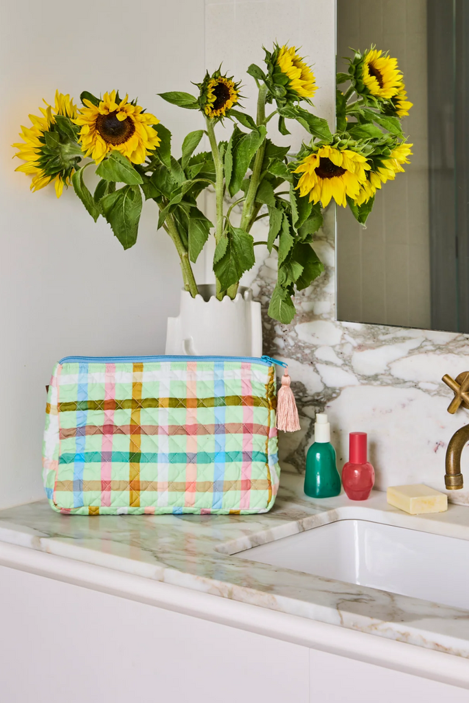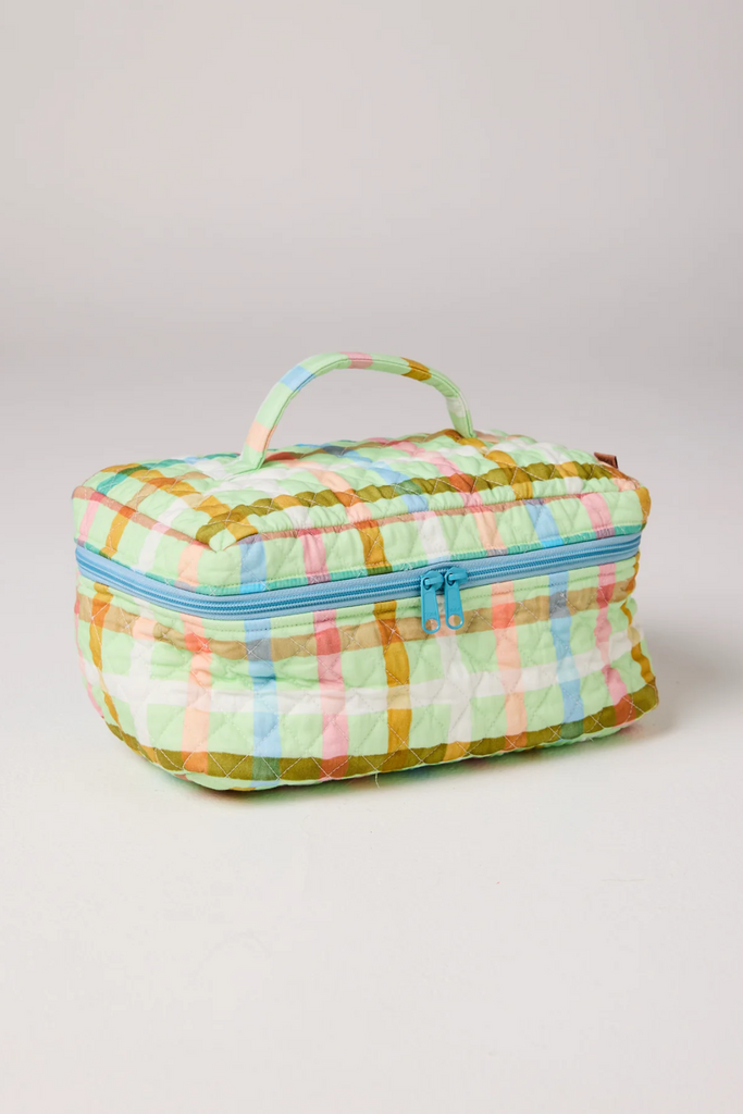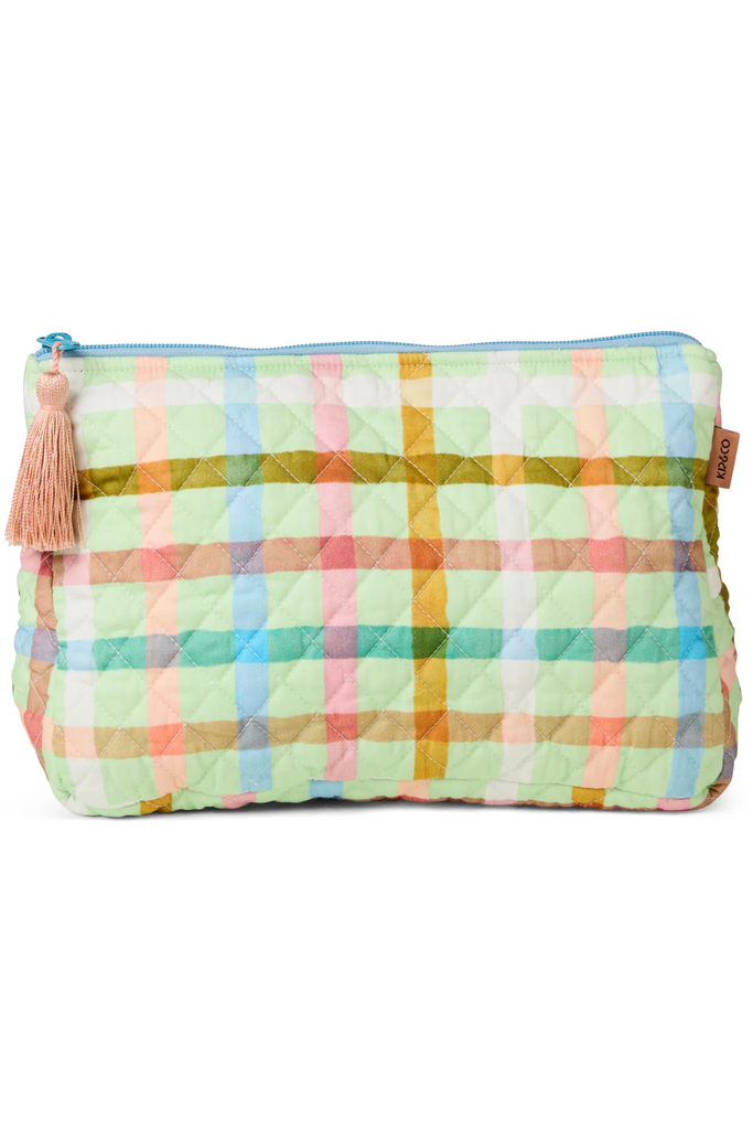 Kip & Co Candy Check Mint Quilted Cotton Toiletry Case