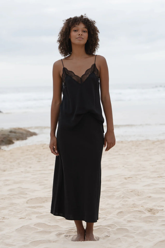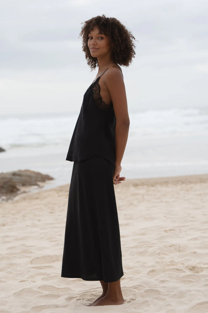 Lilly Pilly Riley Bias Linen Skirt - Black
