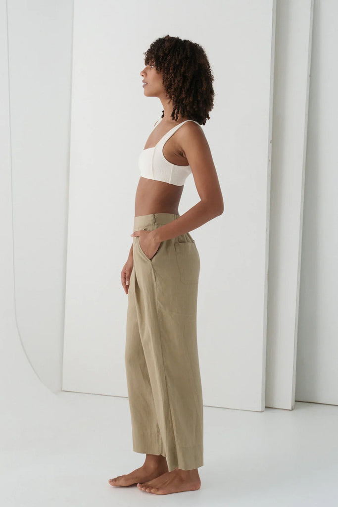 Lilly Pilly Ivy Linen Crop Pants - Taupe