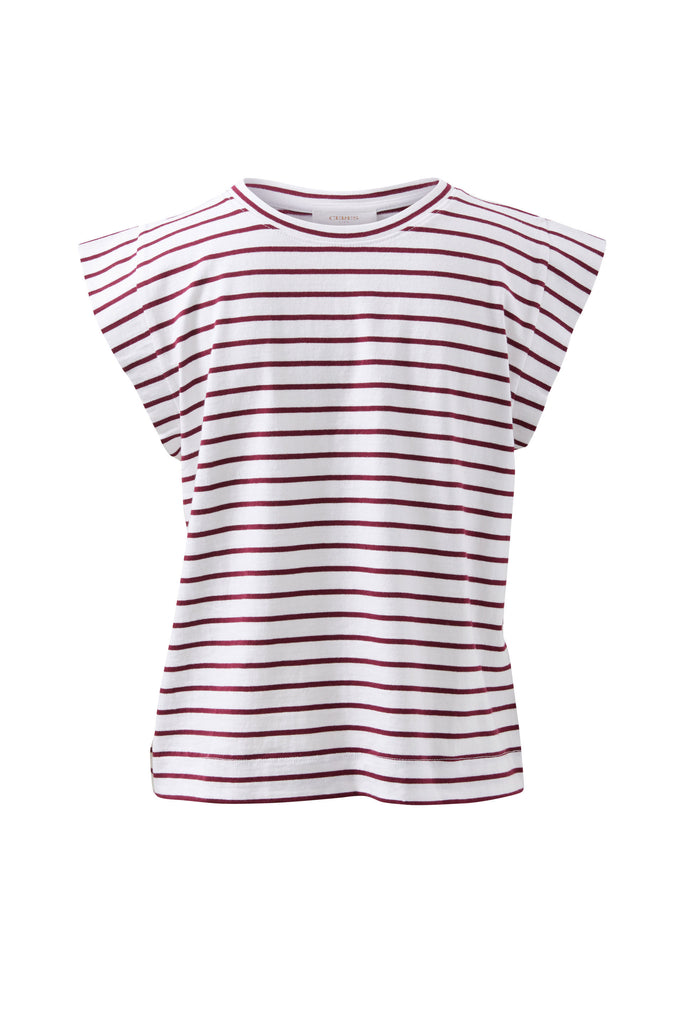 Ceres Life Extended Shoulder Tee - White/Pomegranate Stripe