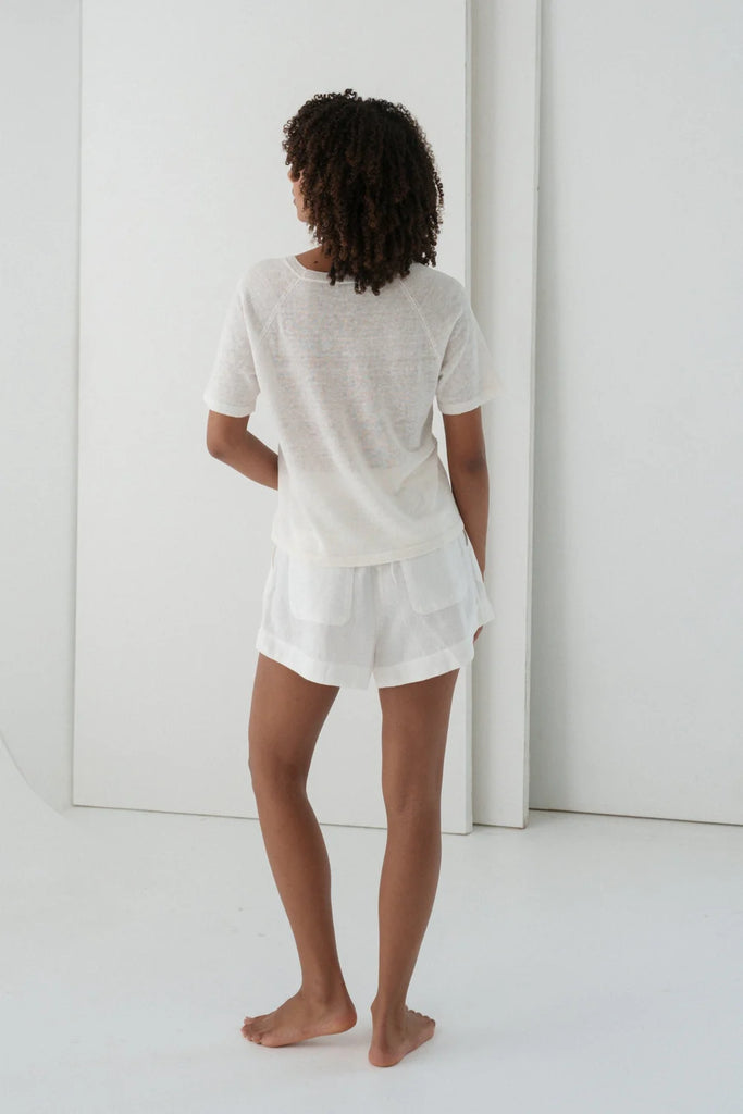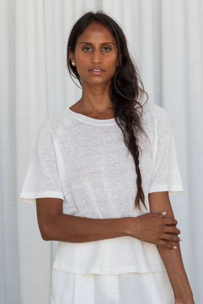 GRACE is the kind of top that does it all - sheer, soft, and featherlight, she’s knitted from the finest 100% European linen yarn for that silky soft feel. With a relaxed fit, raglan short sleeves, and a minimal silhouette, she’s easy to dress up or down. Petite and curvy bust friendly, GRACE is the effortless layer your wardrobe’s been waiting for.