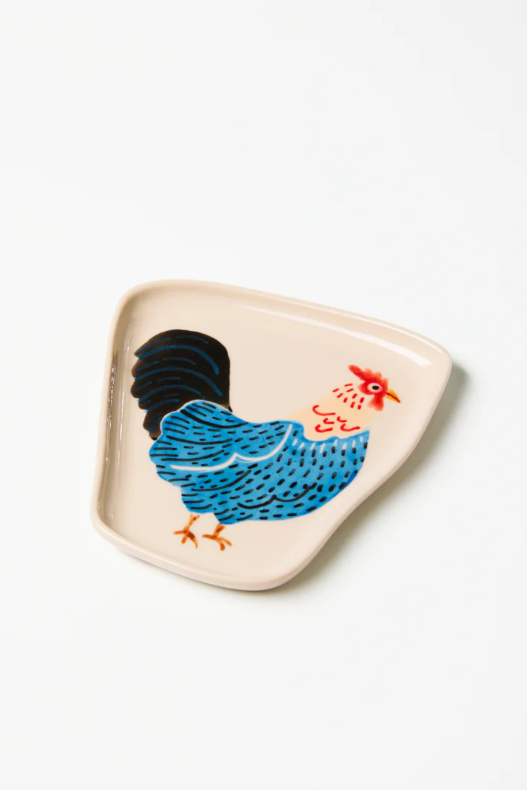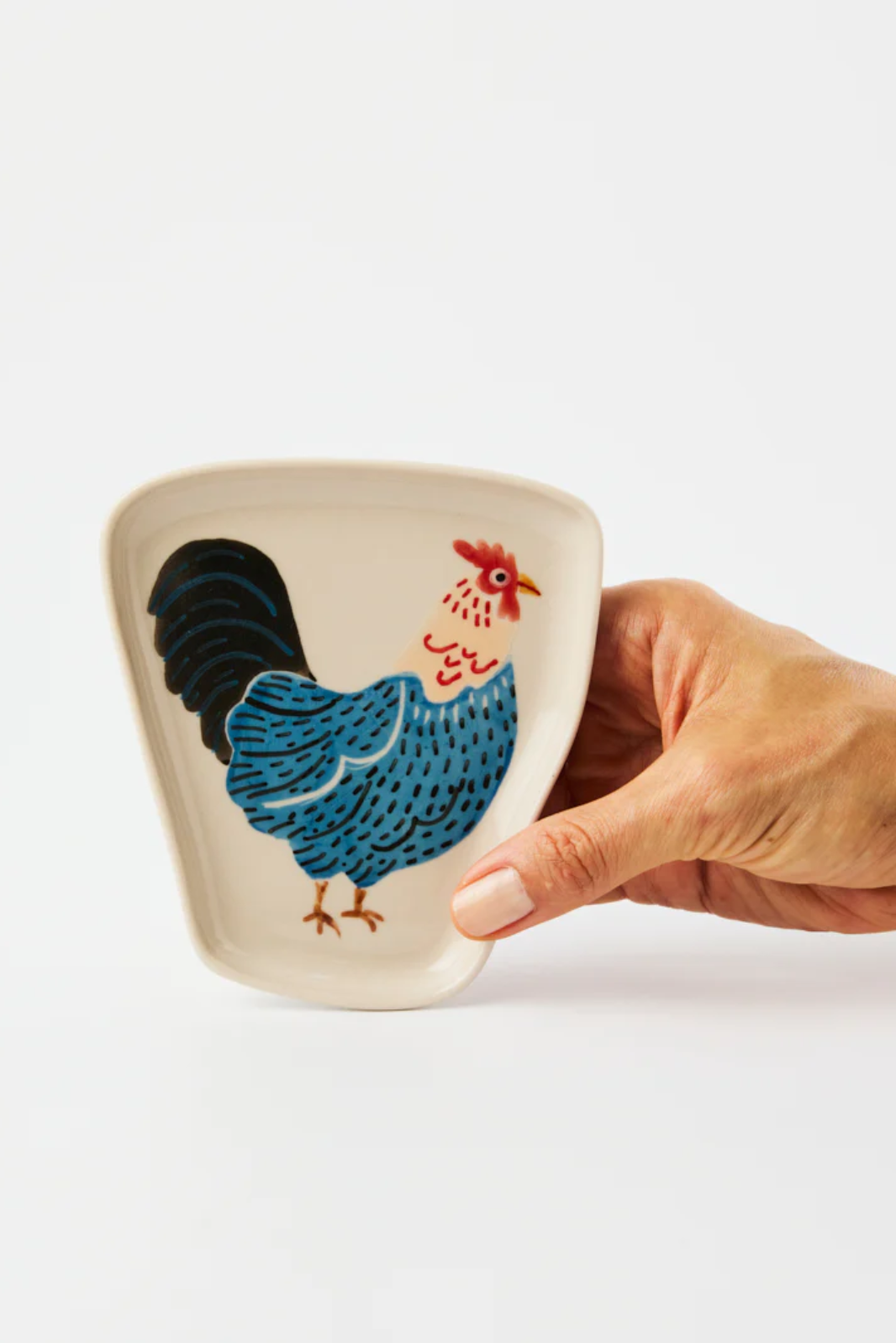A blue-feathered rooster struts across this distinctively shaped plate, perfect for holding your teabag after dunking or as a catchall dish. The Wonky Barn Blue Plate embraces organic forms through earthenware craftsmanship, combining our Sydney design sensibility with the hand-painting expertise of Vietnamese artisans.
