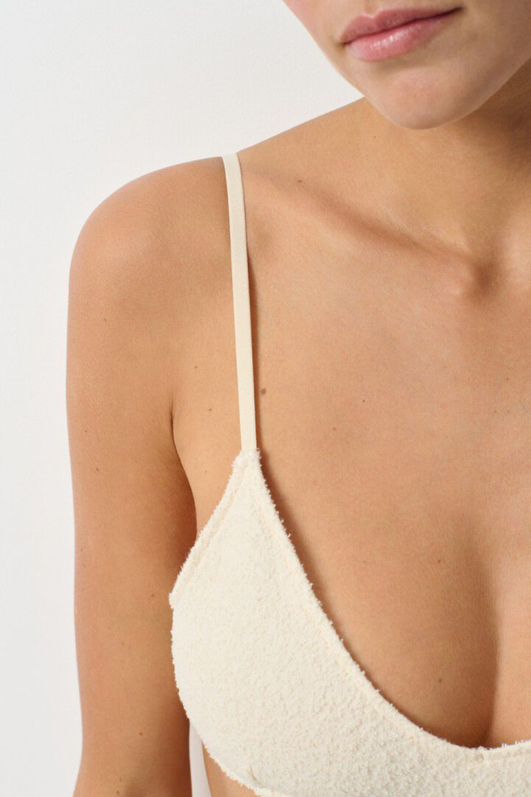 The Bobypark women's bra can be worn both at home and for light exercise. With its triangle shape, it suits all bust sizes. The stretchy fabric and adjustable straps adapt to your body shape for maximum comfort. The outer fabric has a textured finish with shaved loops, and the inner fabric is brushed for a soft feel.