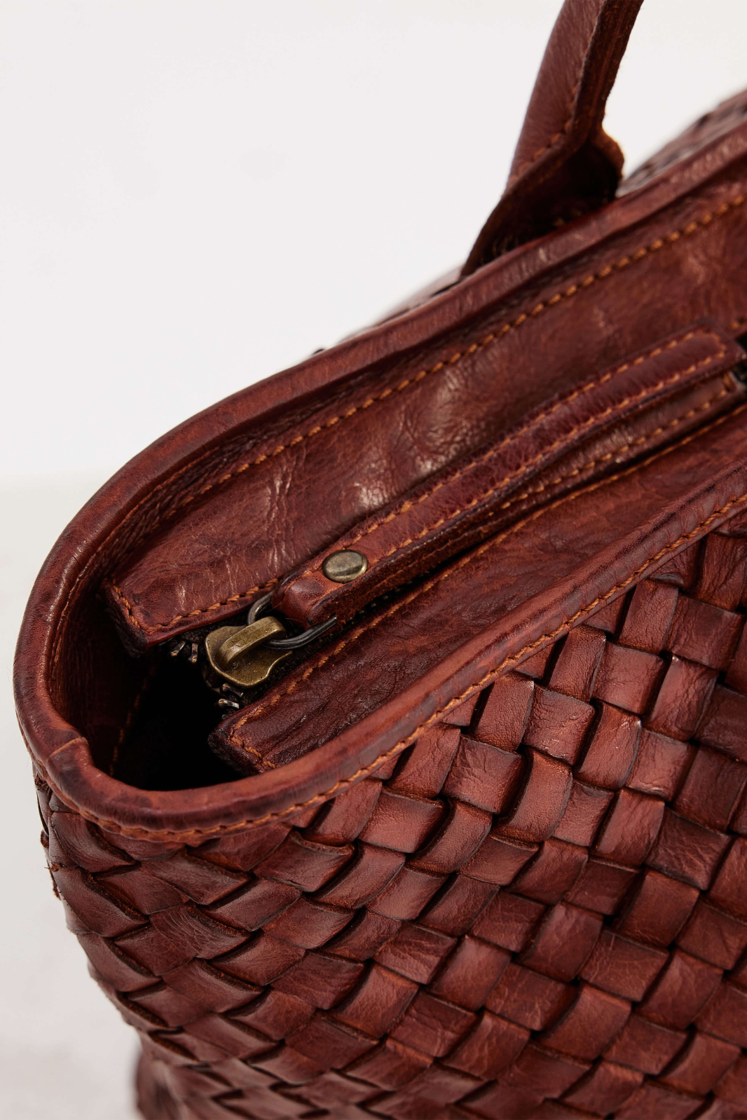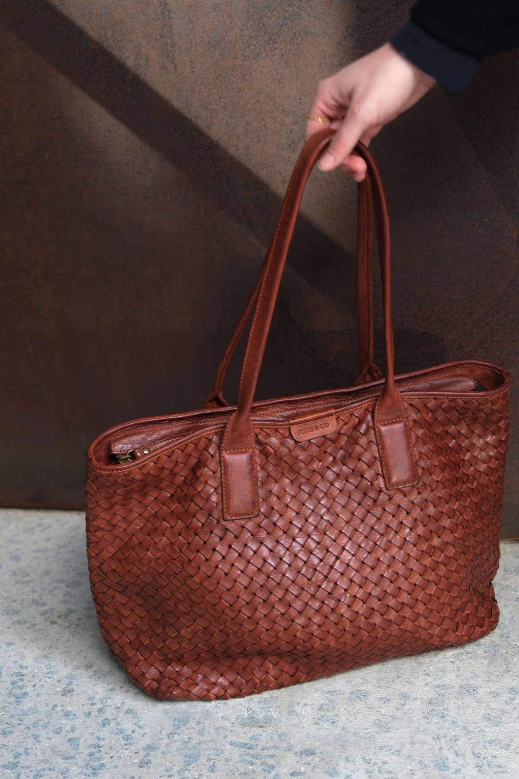 Vegetable tanned woven cow leather outer