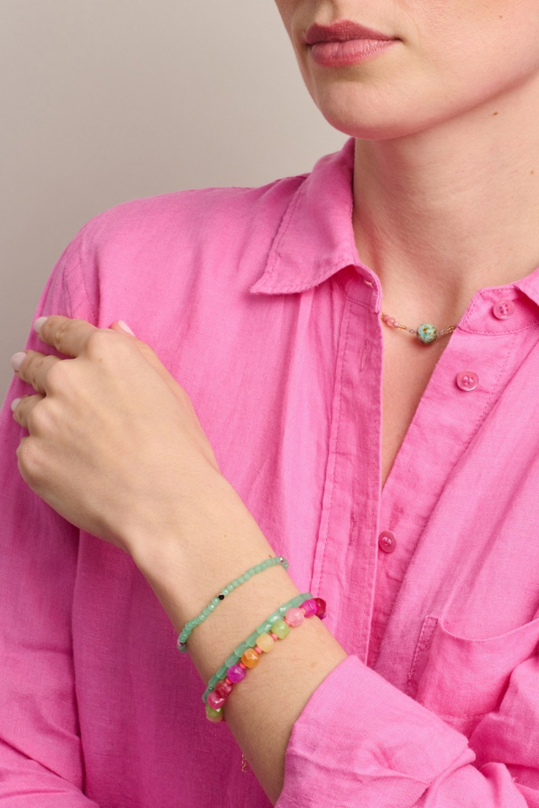 Elasticated stone look beaded bracelet in hues of blues or pinks