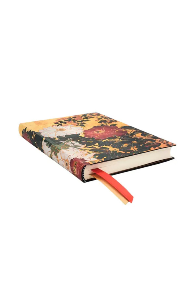 Rinpa is a leading historical school of Japanese painting, established in 17th-century Kyoto, whose artists were known for working in a range of formats. This Natsu design shows a section of a paper screen with various types of blooms often believed to follow the ancient Japanese language of flowers.