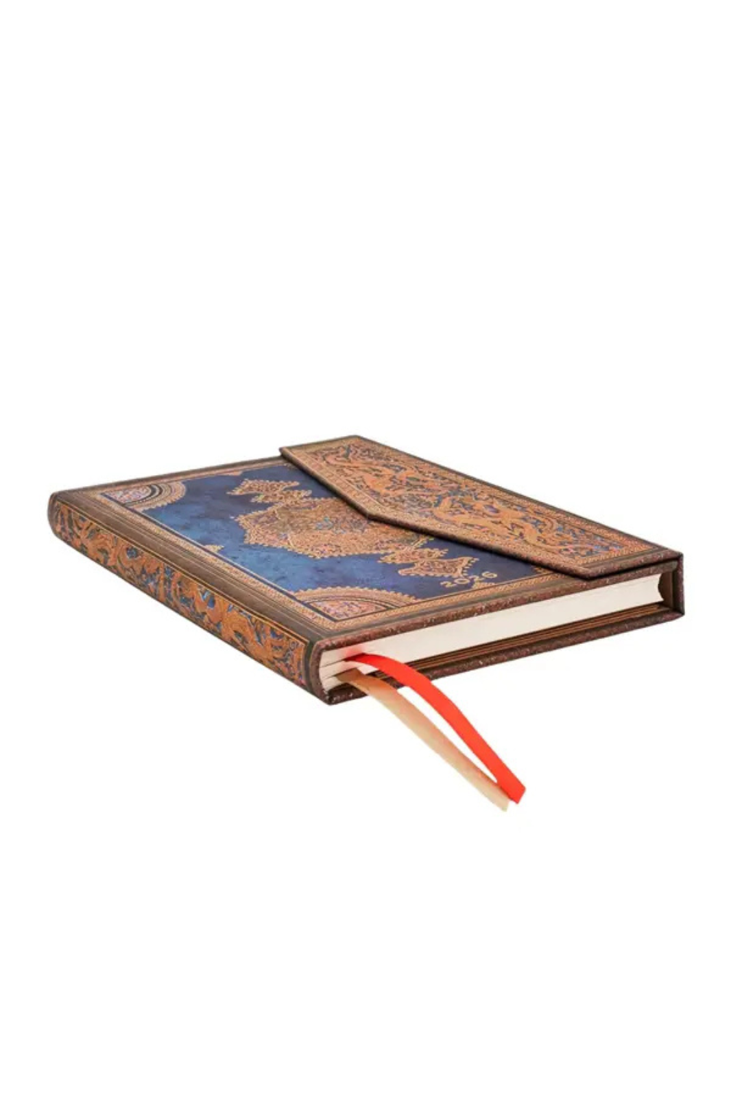 The Safavid Indigo design reproduces a leather filigree pattern incorporating handtooled motifs, retaining the elegance and style of the Islamic Golden Age even in our modern context. Originally released in a classic brown leather look, this new deep blue colour scheme pays tribute to the darkest tone of Persian Blue.