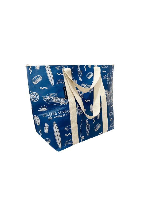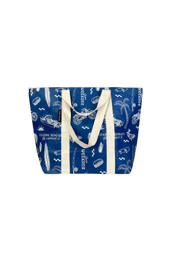 Made from recycled plastic bottles, this tote bag is not only eco-friendly but water resistant.