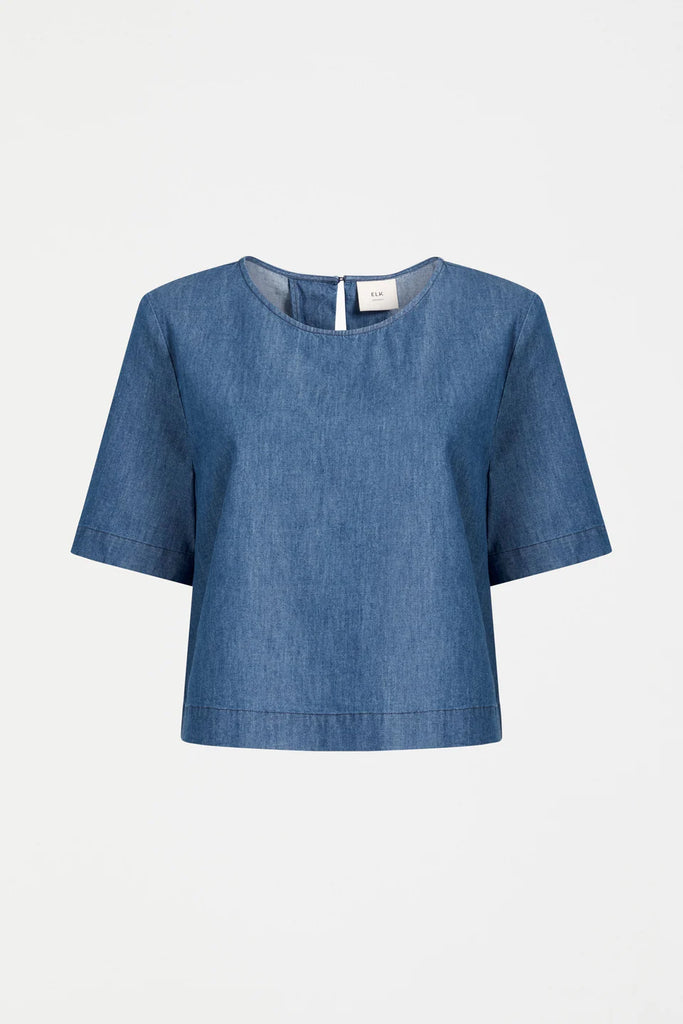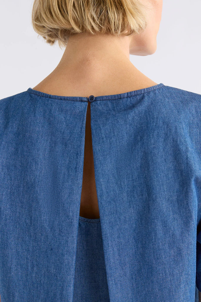 Based off an ELK favourite cut, the Denim Honnor Top has a cropped body length with back inverted pleat detail and wide keyhole opening. Crafted from a soft, lightweight organic cotton chambray-like denim. This easy style is complete with wide sleeves and slightly dropped shoulders. A regular fit body with a slight A-line hem.