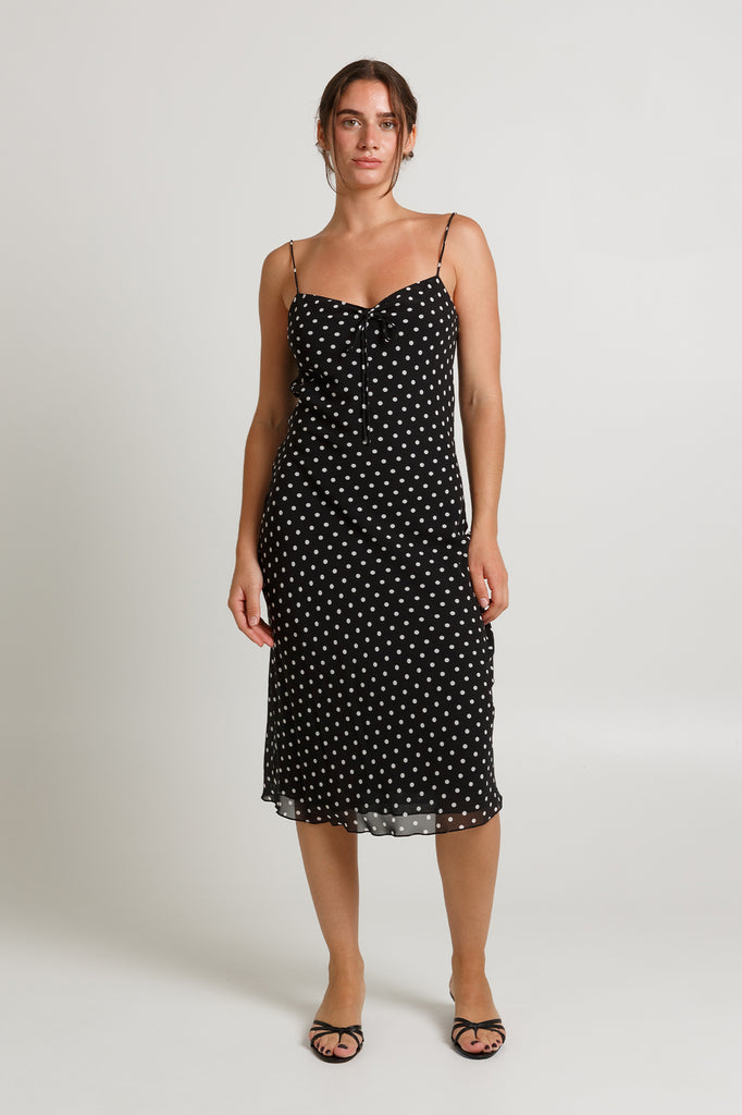 Olga Joan Cinched Bust Slip Dress - Pois Nera