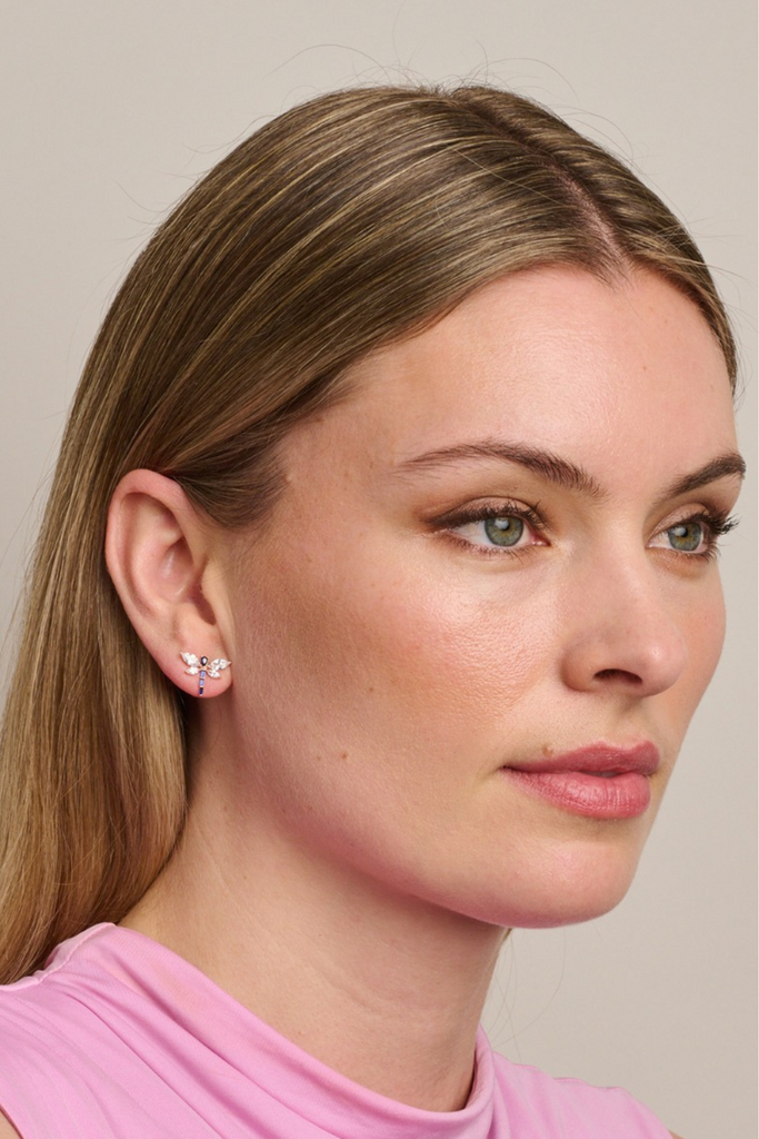 Tiger Tree Crystal and Sapphire Dragonfly Studs