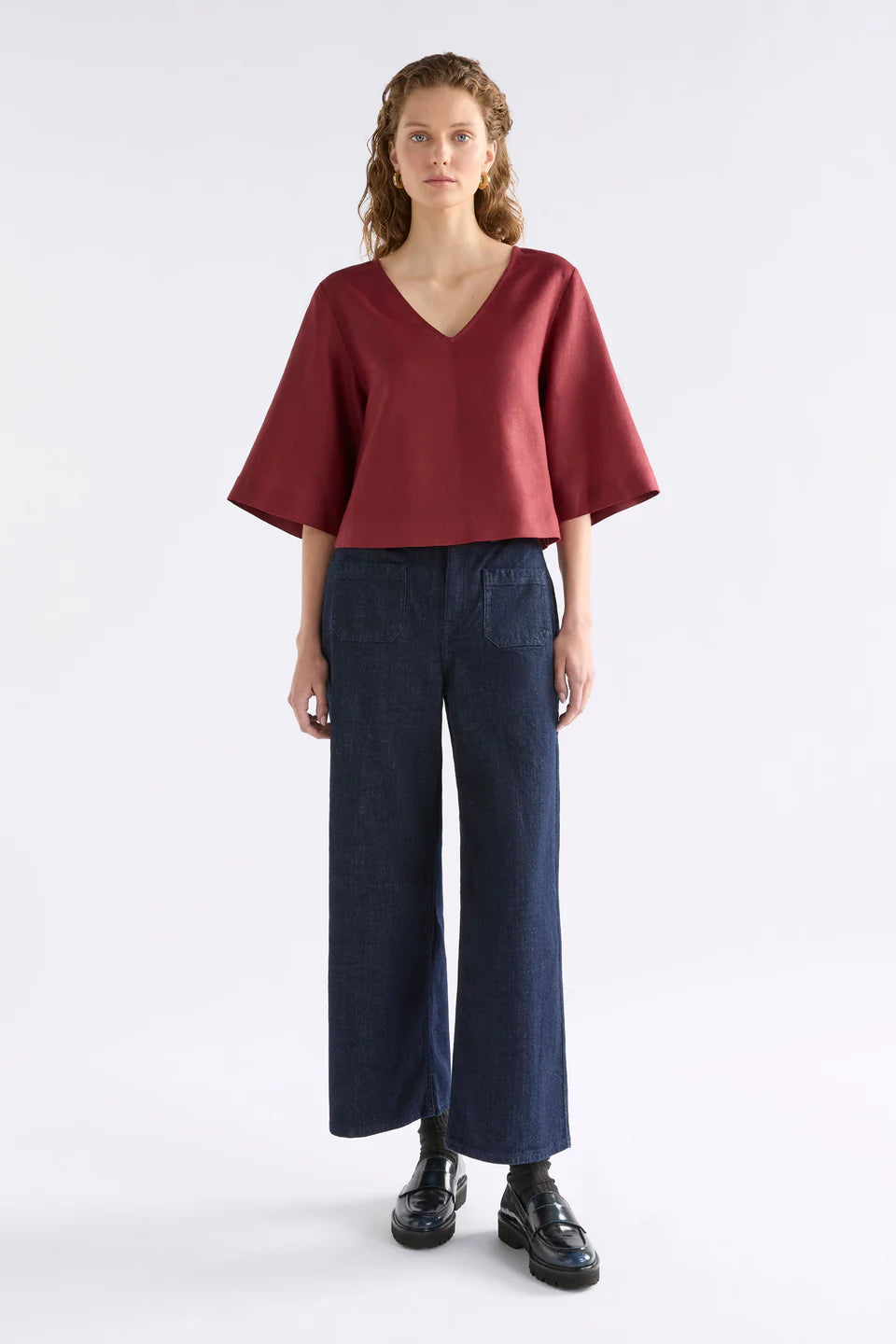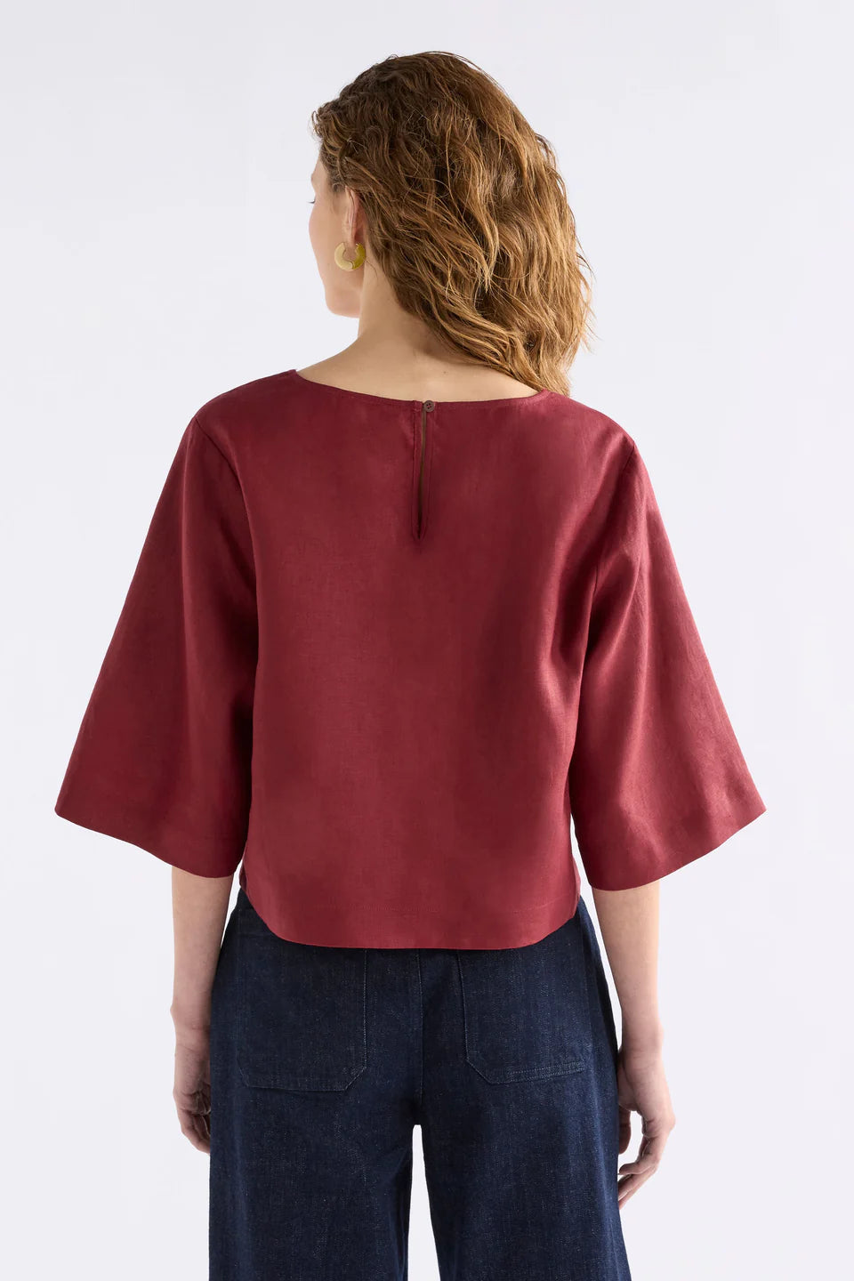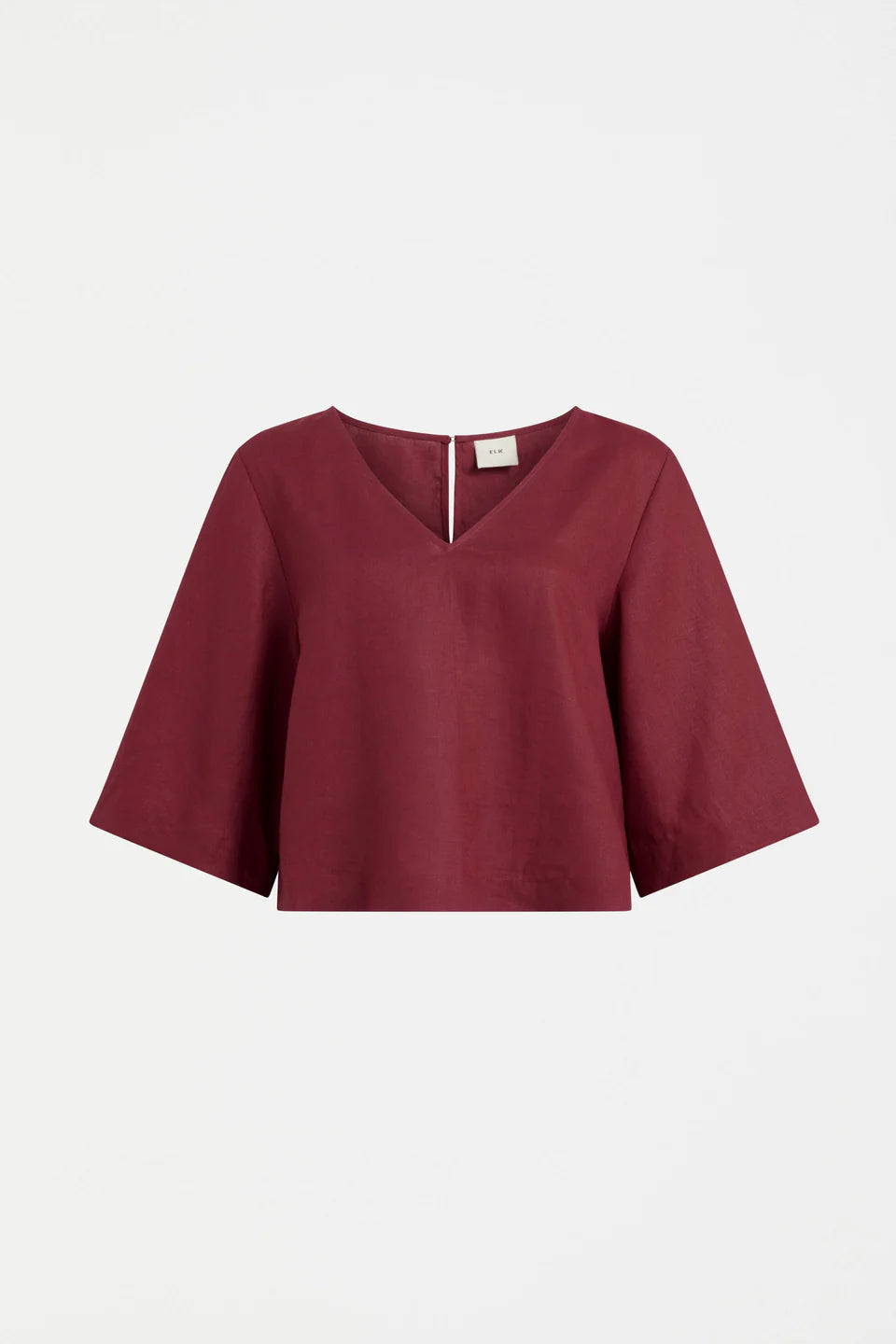 The Llinen Light V Neck Top is versatile day-to-evening style crafted from mid-weight French linen in a rich Bordeaux hue. This regular fit top features a V-neckline and wide elbow length sleeves with keyhole closure at the back with a natural Corozo nut button. The regular fit at the shoulders flows into an A-line shape from the bust. A timeless building block that will take you from warm weather to crisper mornings, pairing effortlessly with your favourite denim, tailored trousers or our seasonal prints.