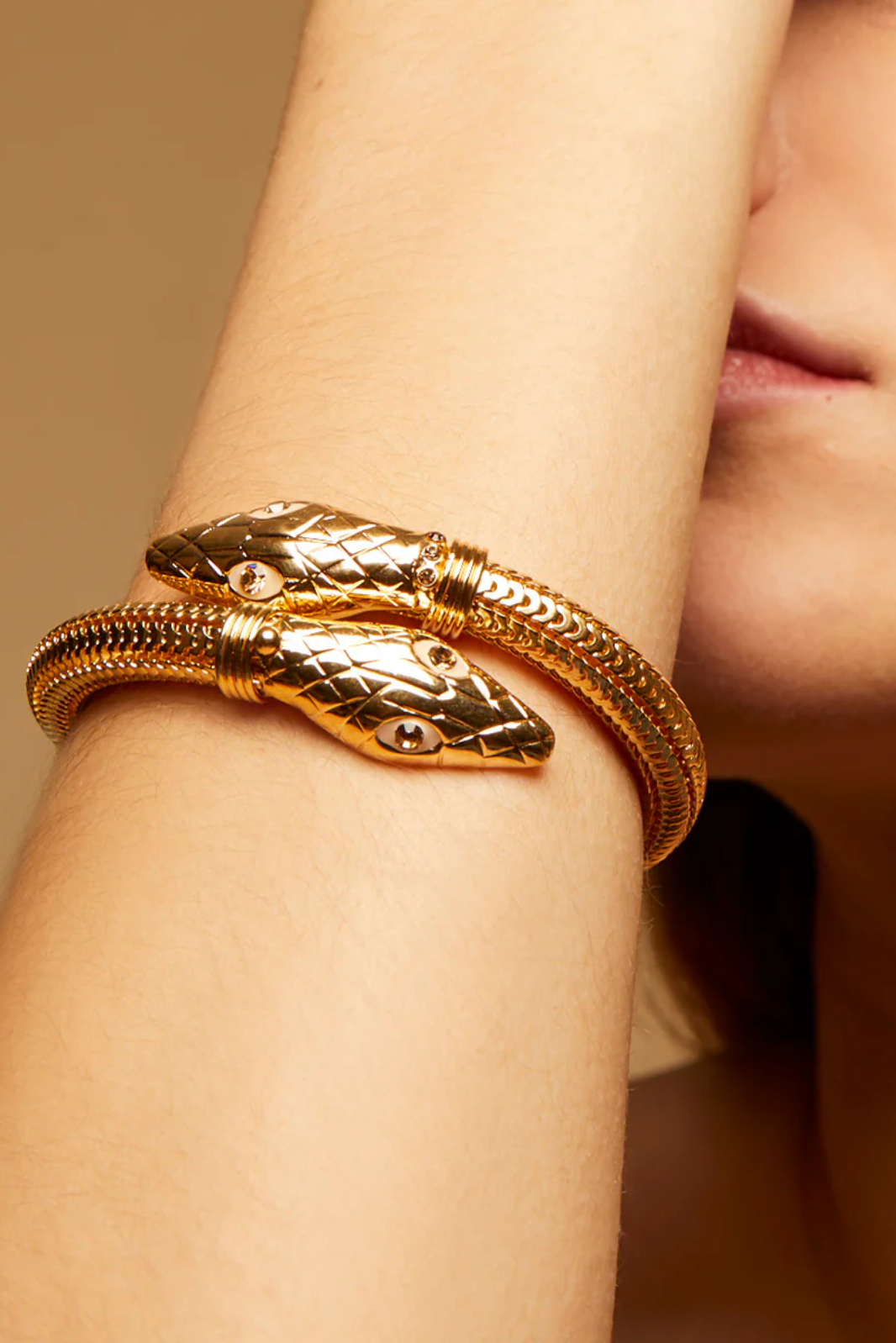 The snakes heads are adorned with strass and enamel.
