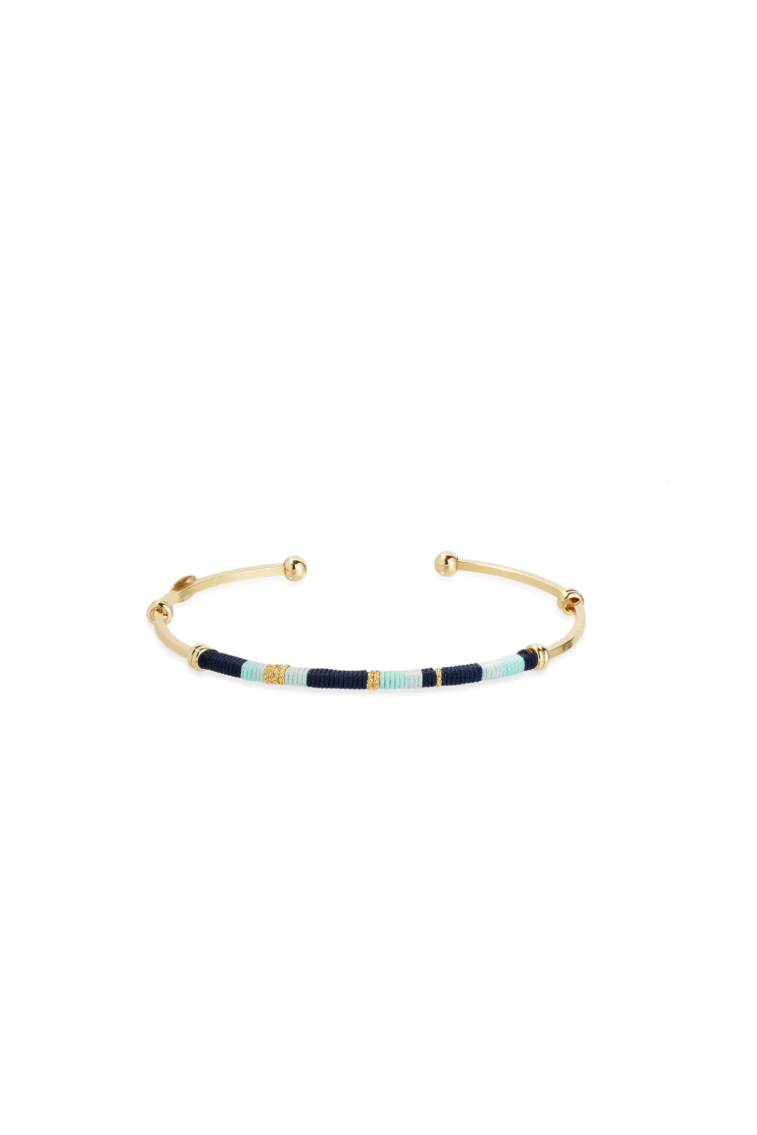 The Zanzibar bracelet draws inspiration from the Maasai spirit, inspired by a journey of André Gas, and celebrates the art of wrapping, a signature of Maison-Atelier. This delicate gold-plated bangle, partially wrapped with colourful threads, reflects a sunny and elegant style.