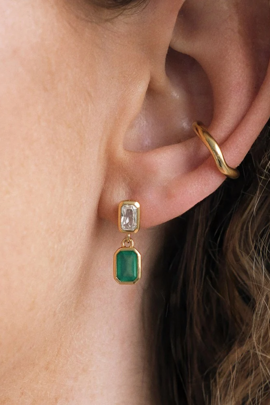 Stones: 2 x 6*4mm emerald cut green onyx gemstones & 2 x 5*3mm emerald cut lab-grown white sapphires