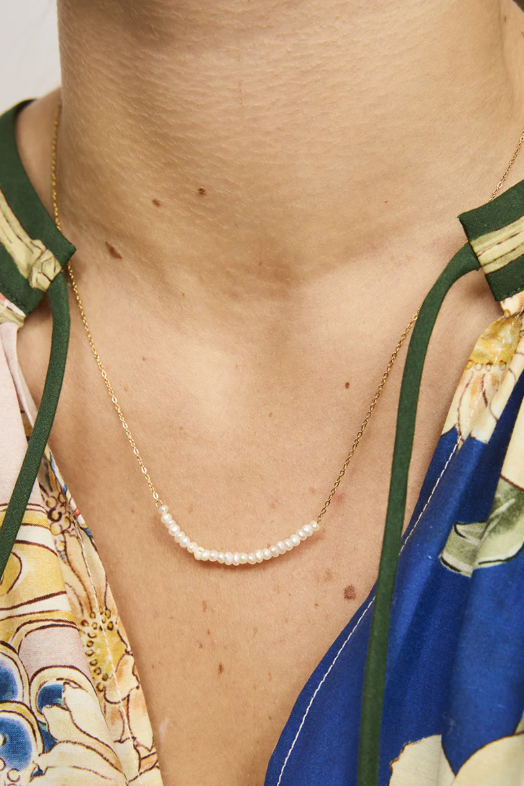 Freshwater pearl detail on fine chain