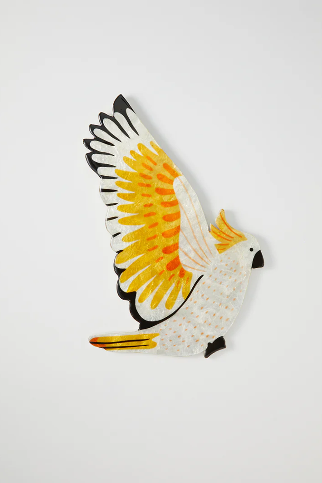 Transform your walls with the Aerial Cockatoo Wall Art, a stunning representation of Australia's majestic Cockatoo species. Crafted from capiz shell, this wall tile features the cut-out design of the Cockatoo in flight, with its distinctive crest and snowy white plumage.