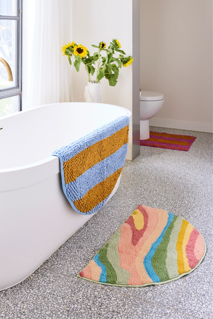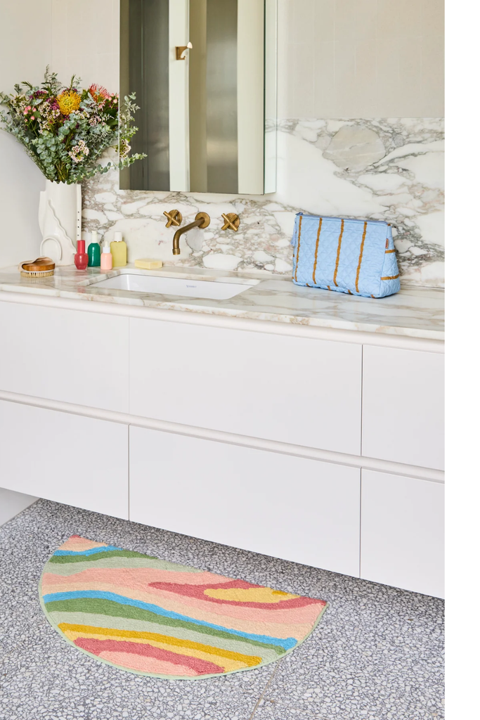 Step into a swirl of pastel magic! Our Rainbow Beach Bath Mat is soft, squishy, and made from 100% cotton, with anti-skid backing to keep every step safe. Perfect for adding a splash of colour (and a sprinkle of joy) to your bathroom routine.
