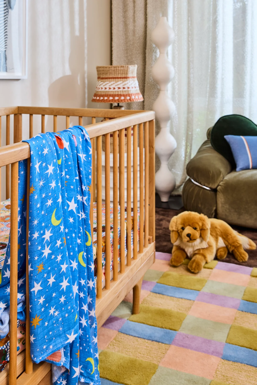 Wrap your bub in softness from the very first cuddle. The Stars And Moon Bamboo Swaddle is lightweight, breathable and oh-so-gentle on delicate skin, perfect for sleeping, strolling or snuggling close. Naturally soft and beautifully boxed, it’s a gift favourite for good reason.