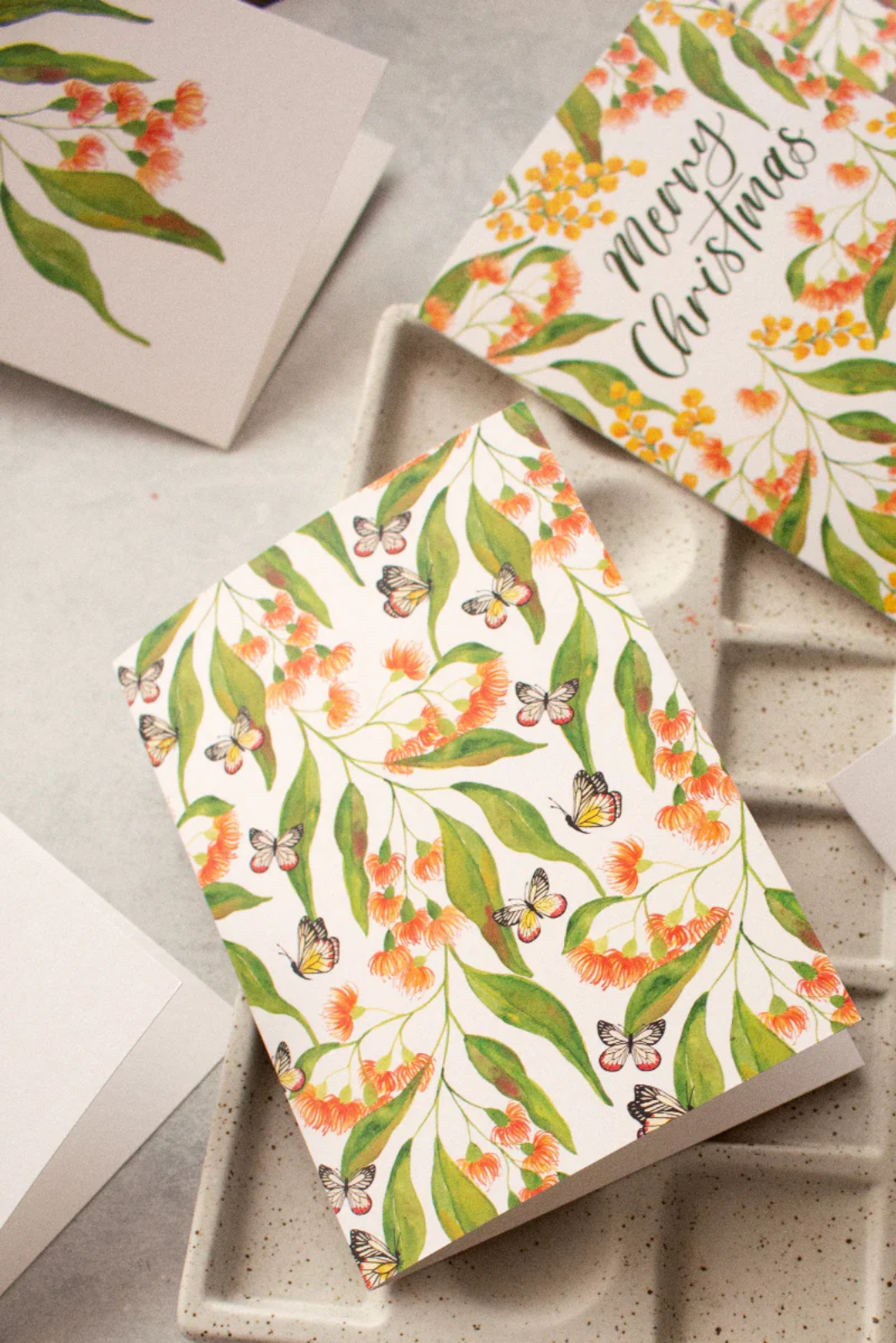 Celebrate life’s little moments with this Greeting Card featuring a beautifully illustrated pattern of Jezebel Butterflies & Flowering Gum, this versatile card is perfect for birthdays, thank-you notes, or just because.