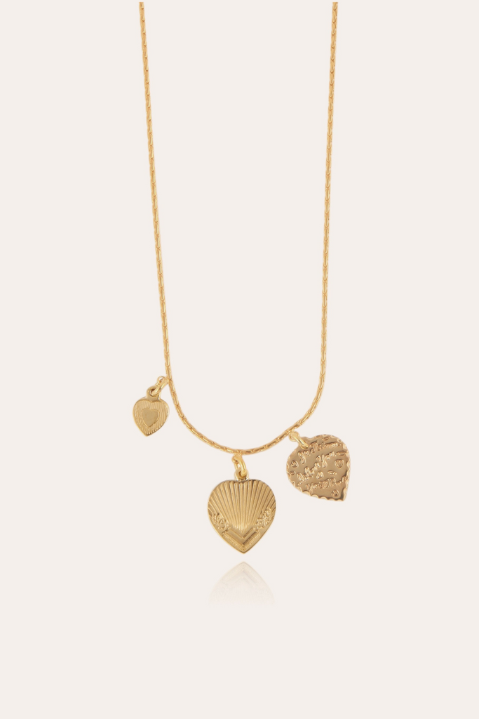 Tiger Tree Gold Large Ball Edged Heart Necklace