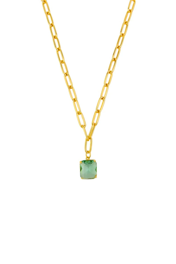 Tiger Tree Necklace - Gold Link Light Emerald Crystal Pendant