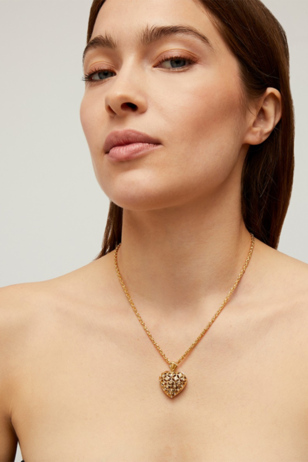 Its domed, filigree heart, adorned with sparkling rhinestones, reveals a subtle sparkle.
