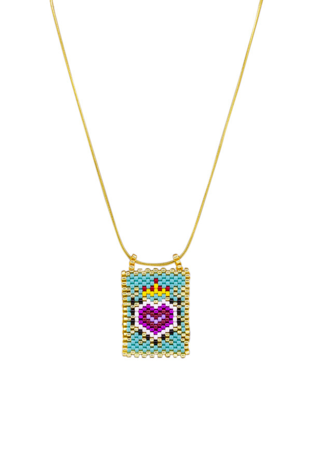 Colourful beaded pendant on snake chain