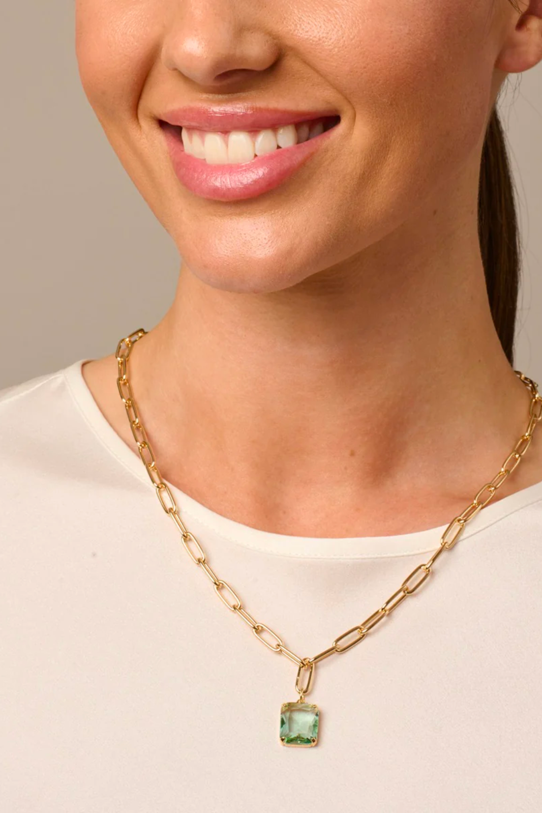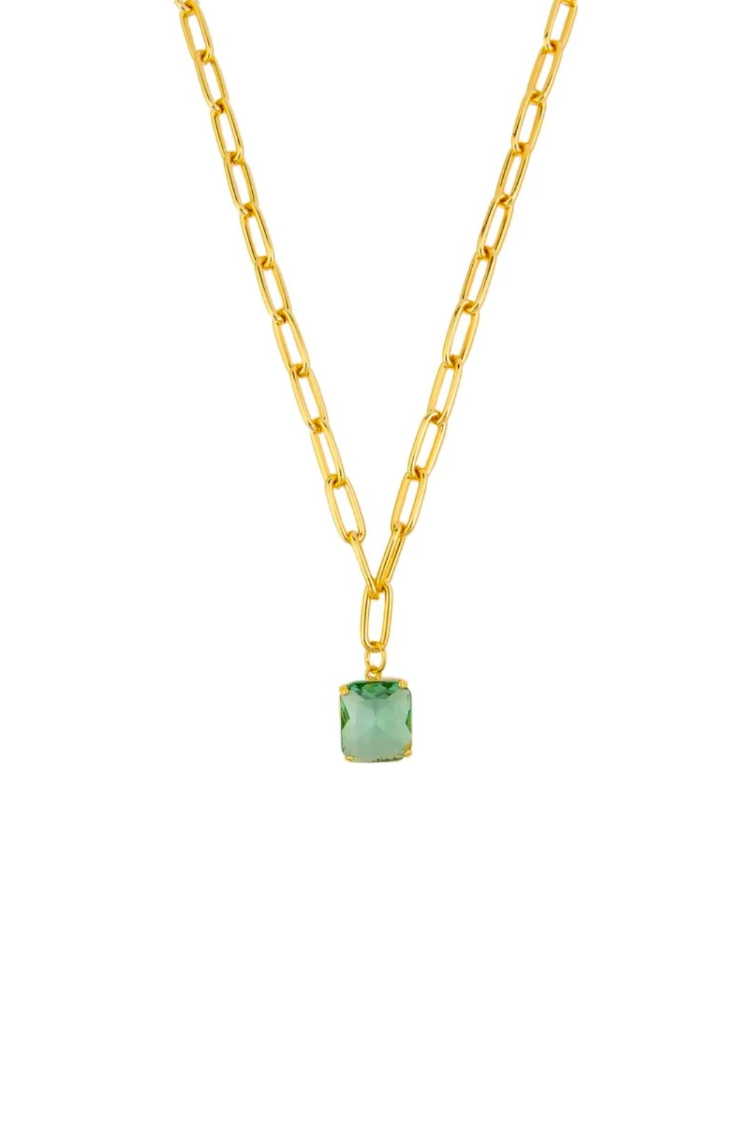 Tiger Tree Necklace - Gold Link Light Emerald Crystal Pendant
