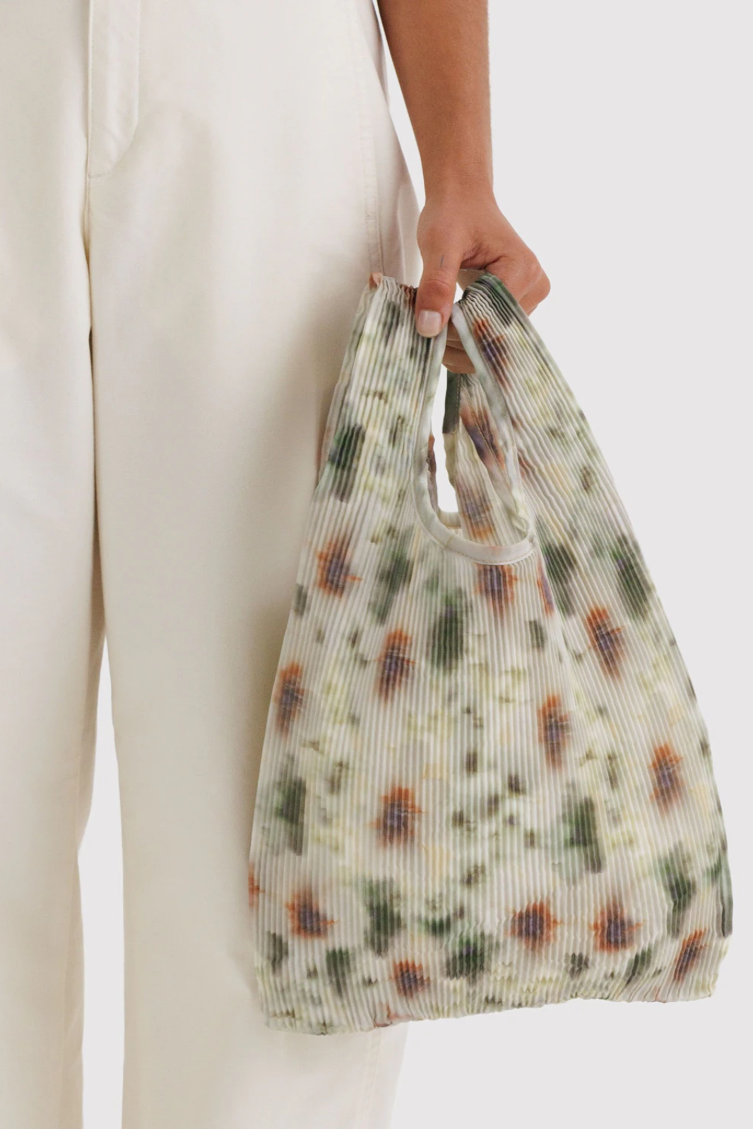 A special, pleated version of the classic Baby Baggu shape that can be worn as a dressier, fashion forward catch-all bag.● Measures 18" H x 10" W x 4" L● Pleated recycled ripstop polyester● Machine wash cold, line dry● Holds 30lbs