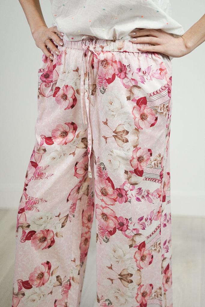 The Peony Garden Lounge Pants are crafted from 100% lightweight cotton voile.