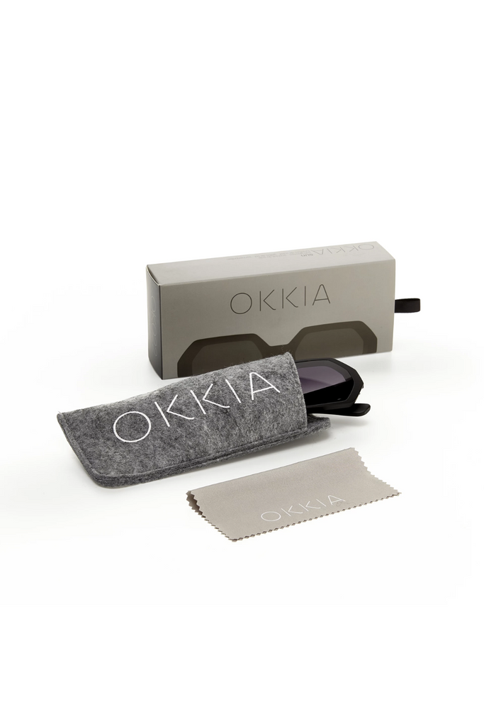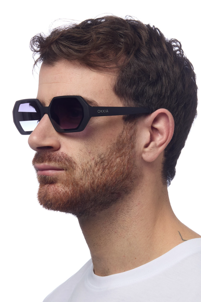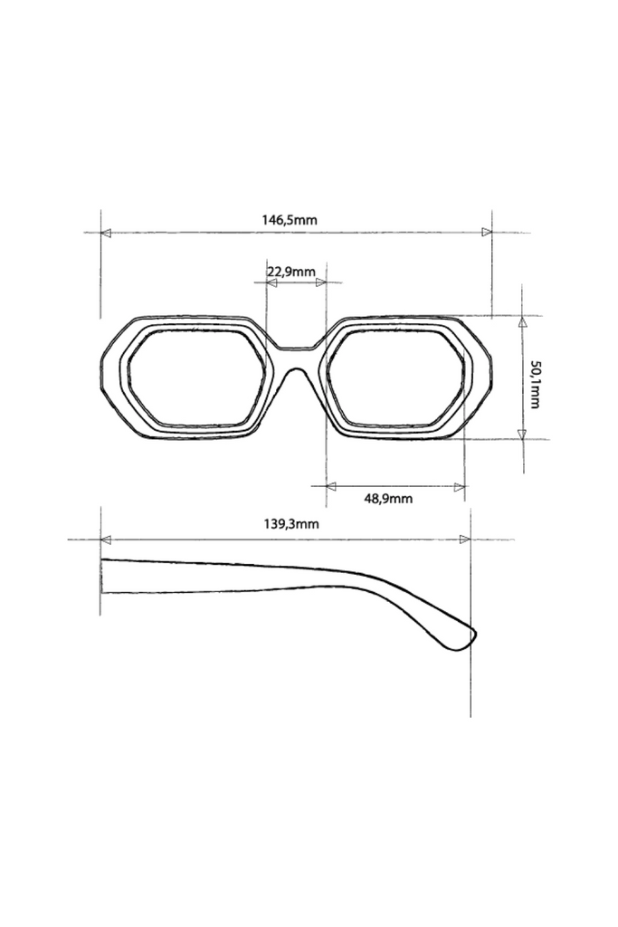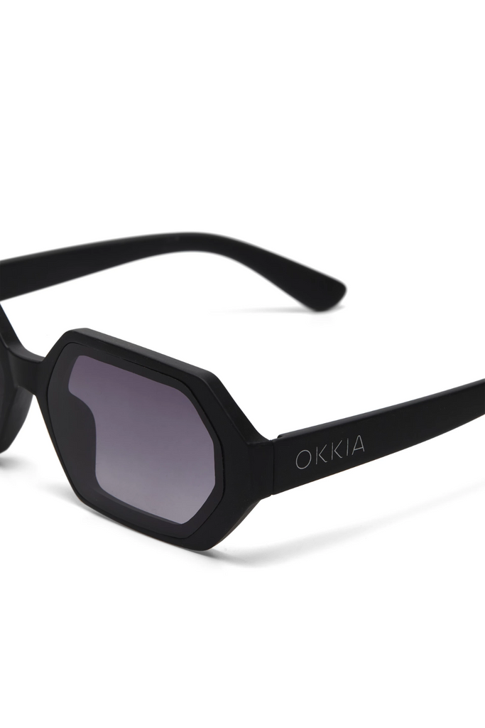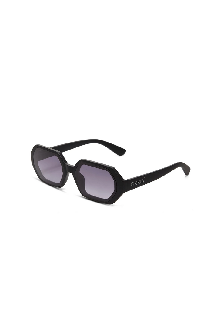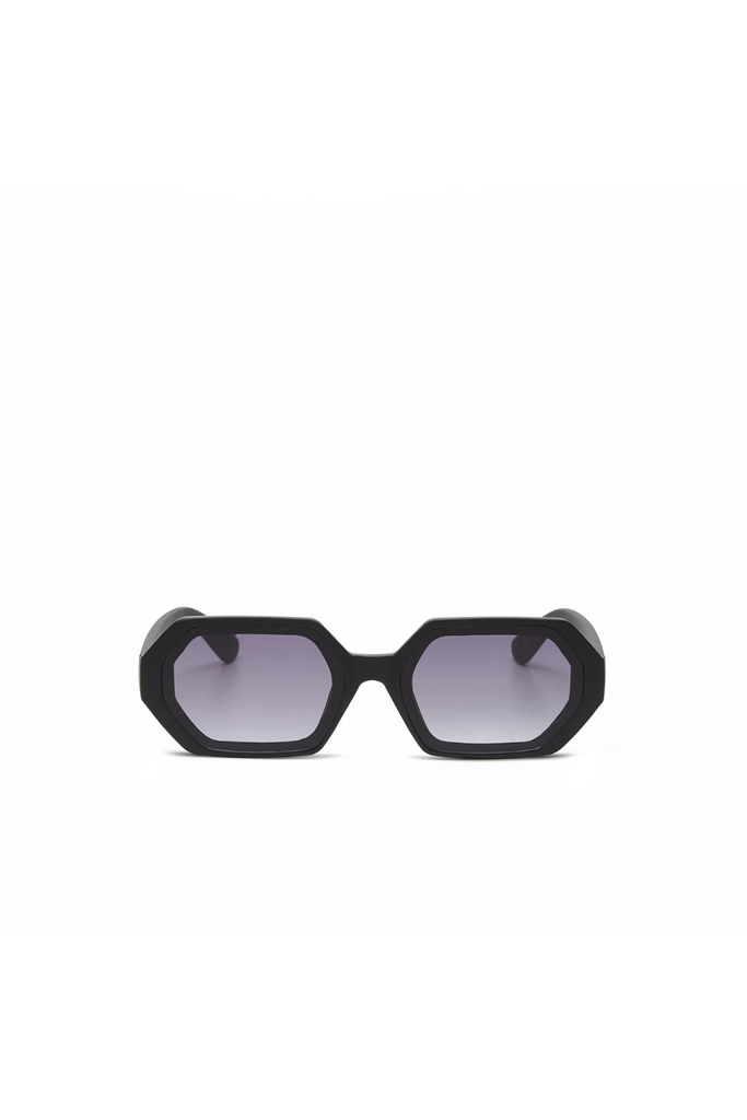 ANDREA is a pre-assembled hexagonal sunglasses with soft touch frame.