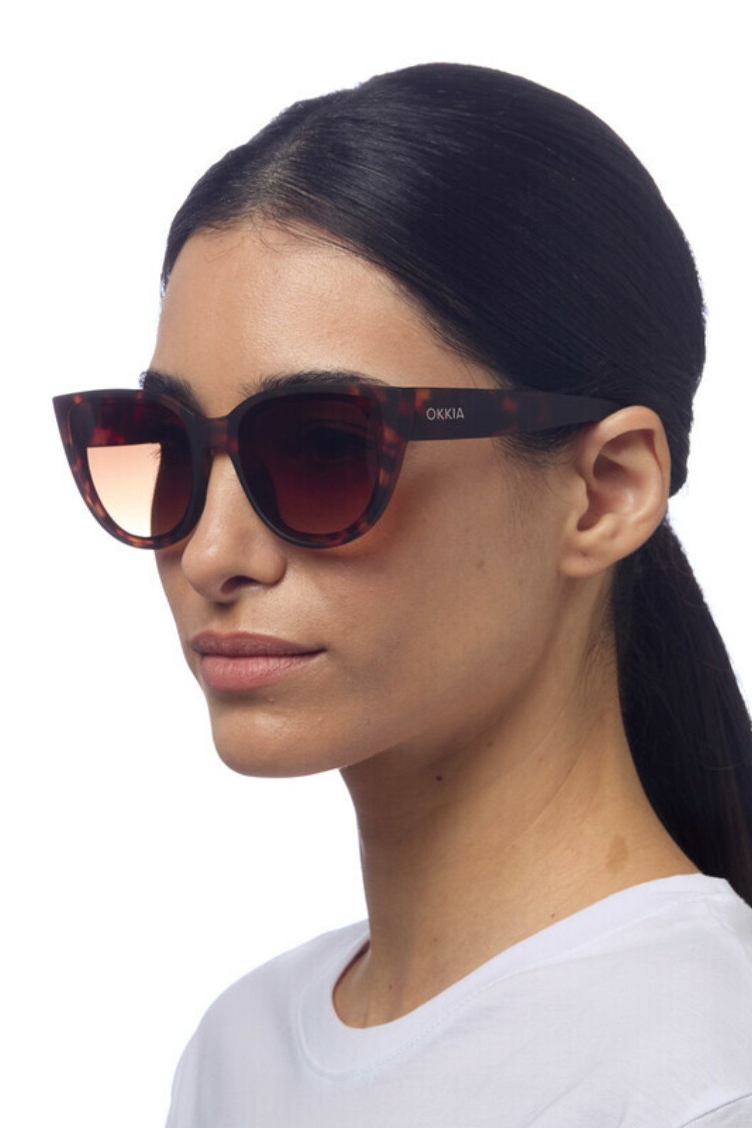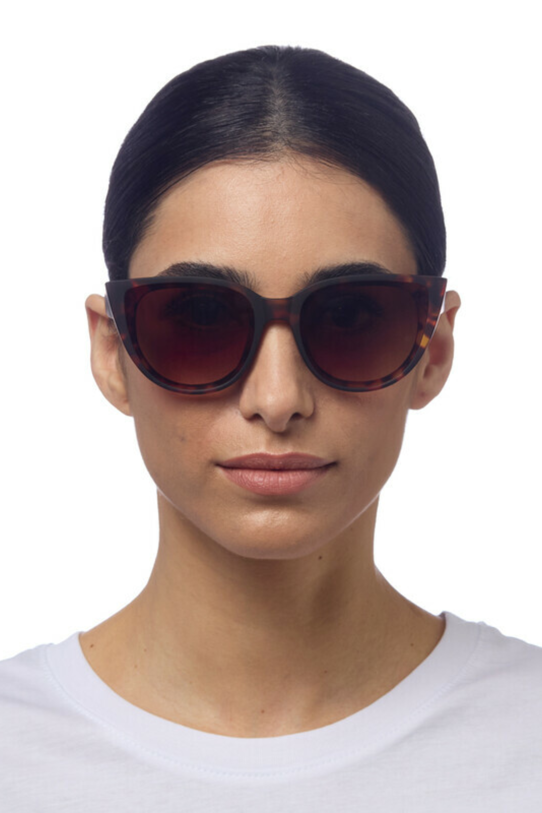 SILVIA is a pre-assembled cat-eye lite sunglass with a soft-touch frame and overlap lenses.