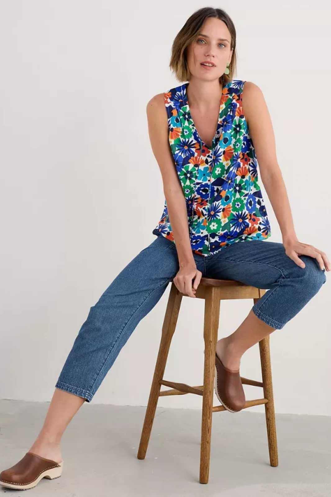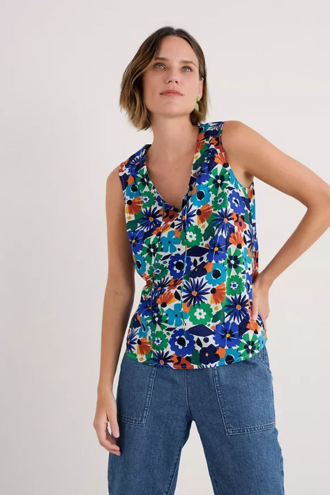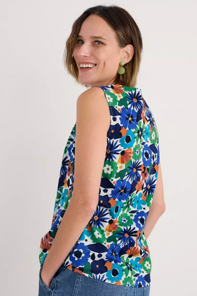 A cool and airy sleeveless top in a unique Seasalt print. The Cobbs Well Top has a pretty V neck with keyhole detail and fine rouleau ties. Team it with tailored crops or denim and a fine knitted cardigan for effortless style.