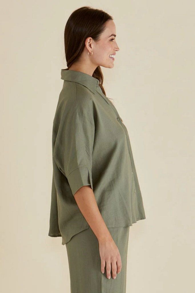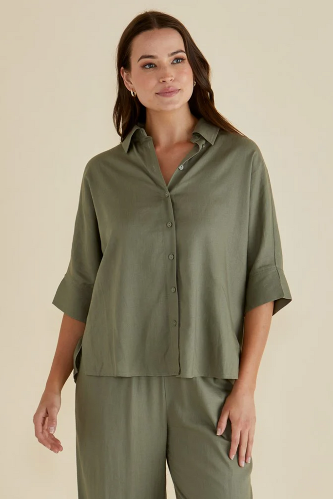 Betty Basics Lynwood Linen Shirt - Olive Green