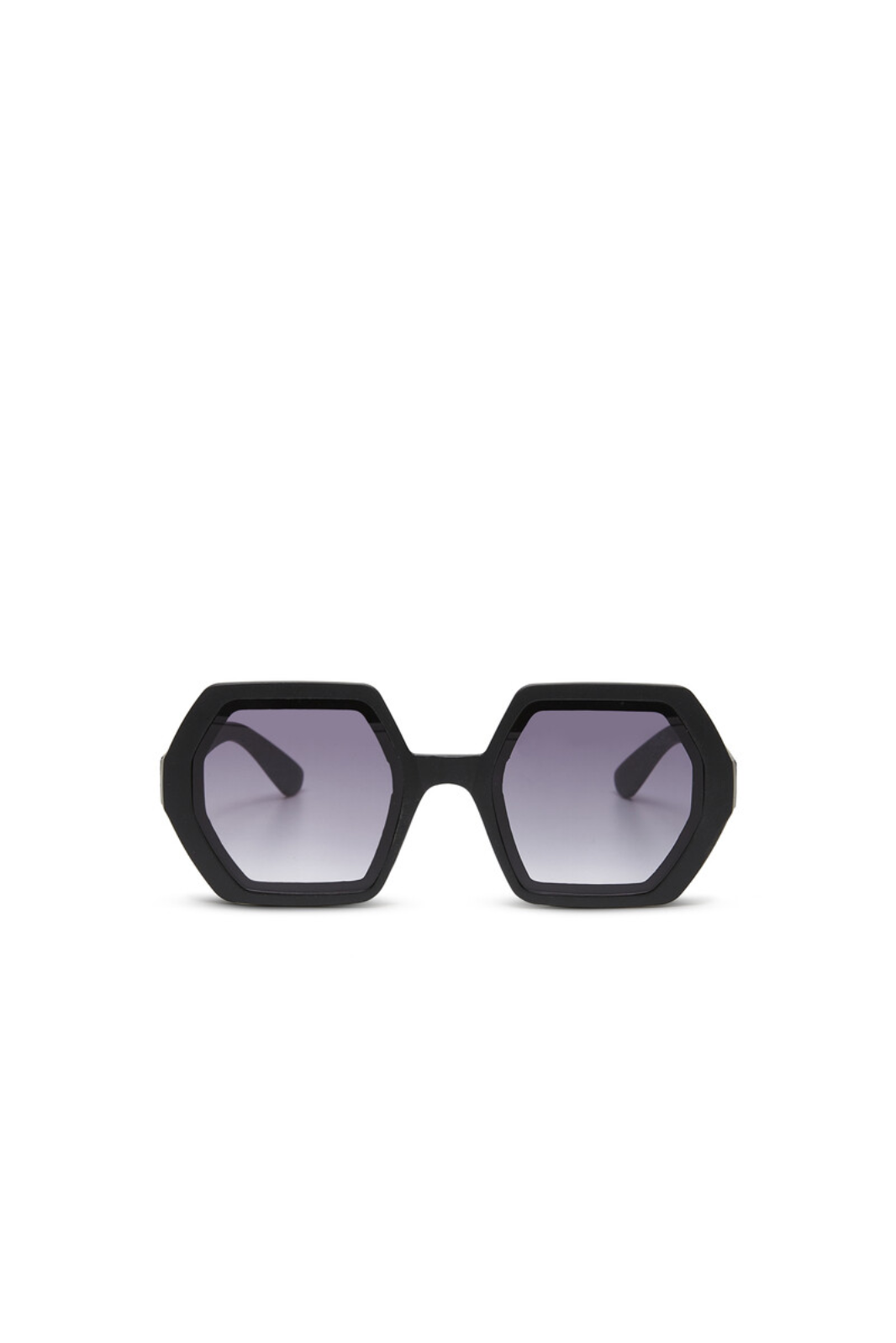 EMMA is a pre-assembled hexagonal sunglasses with soft touch frame and overlapping lenses.