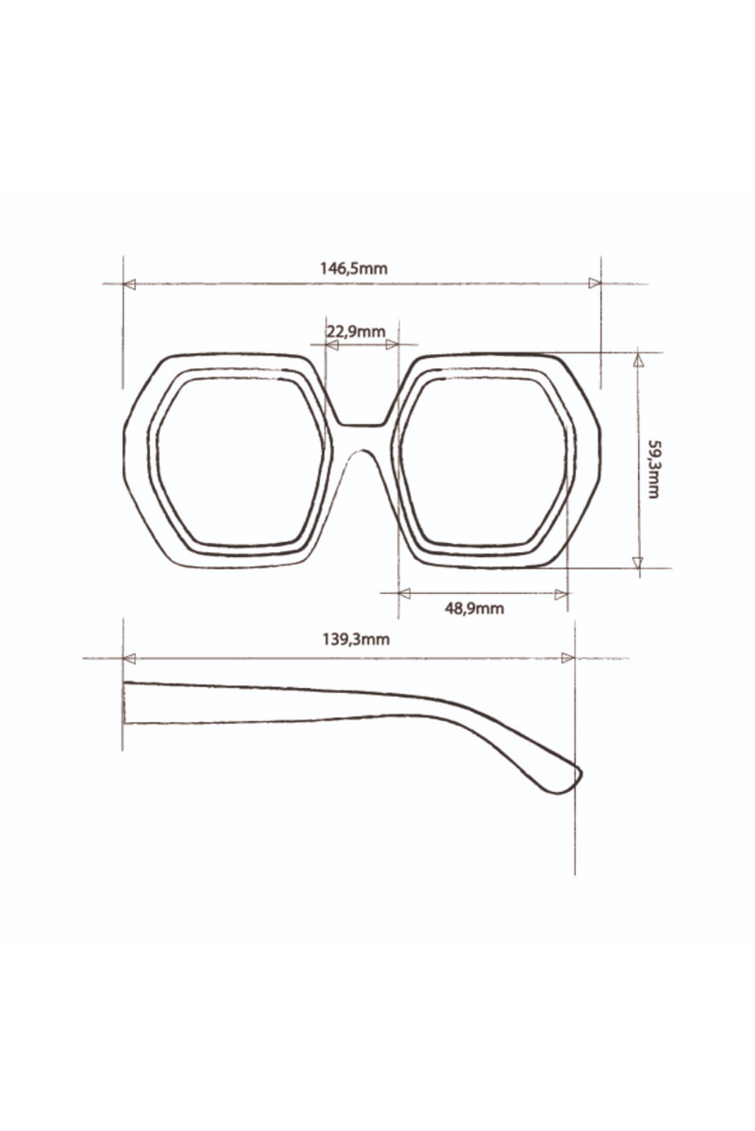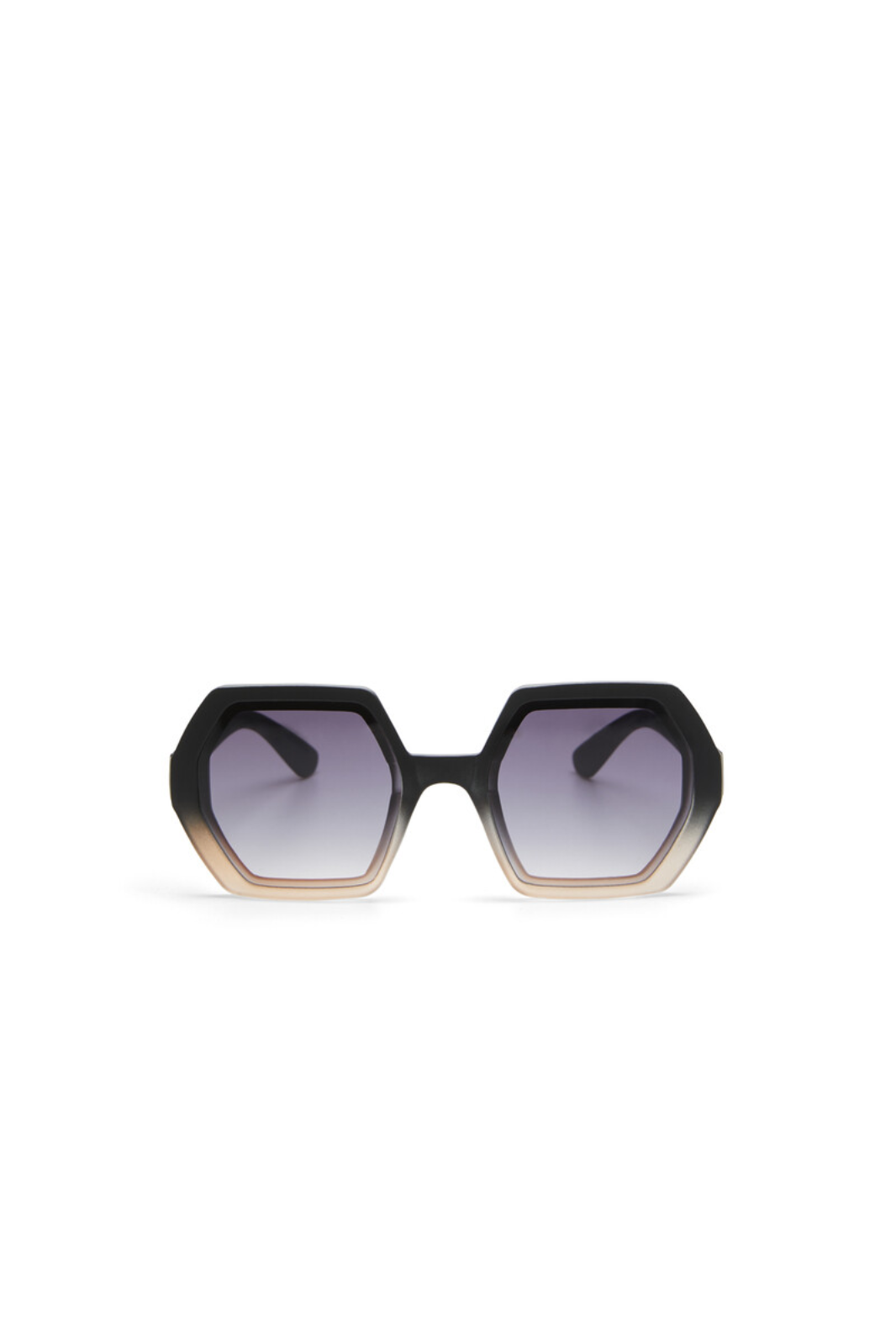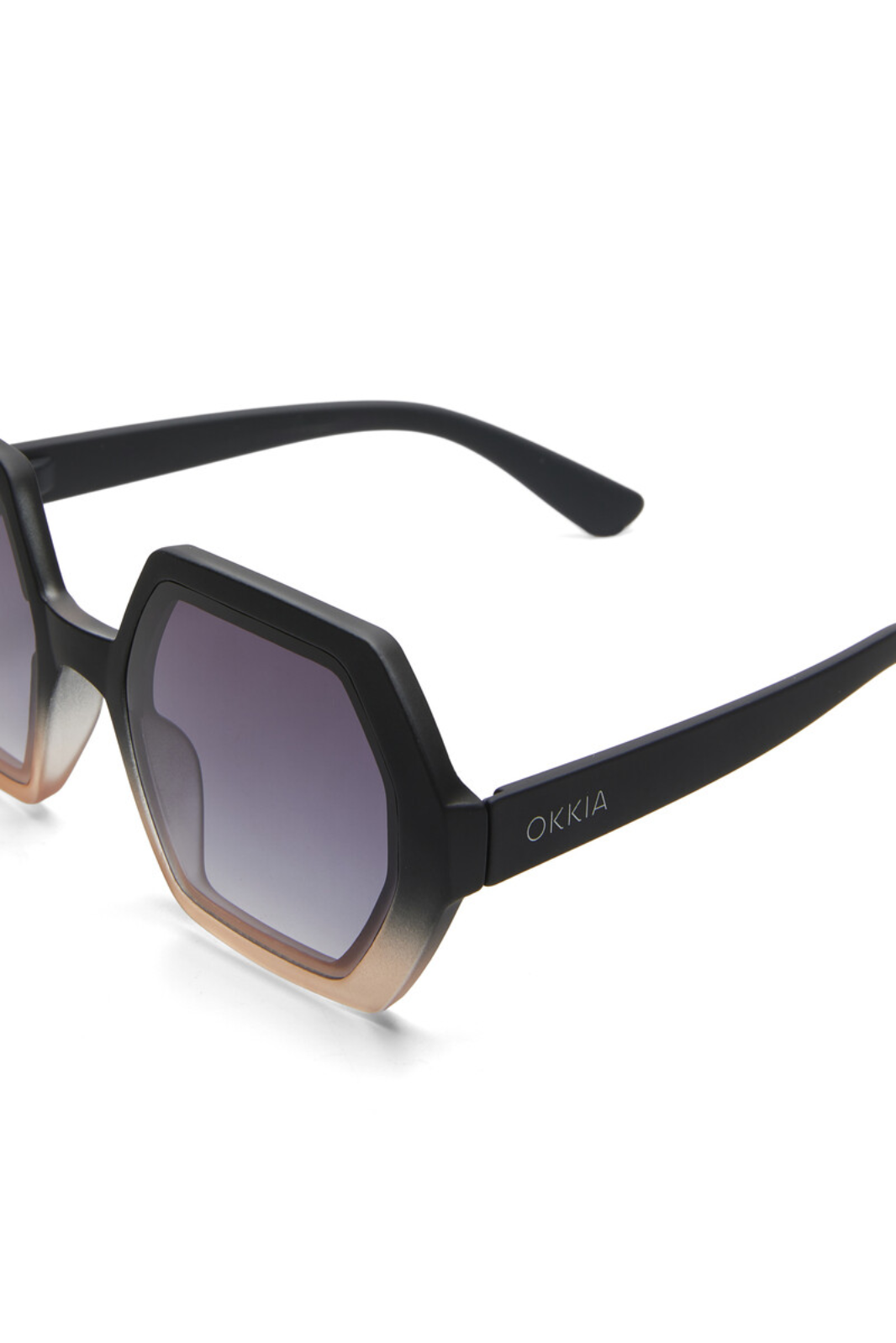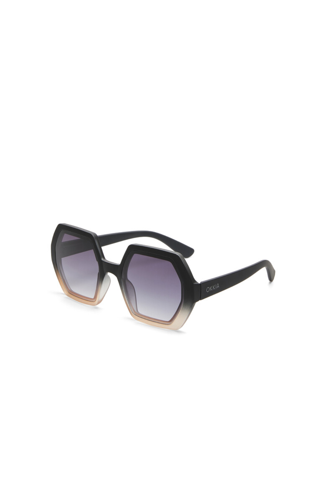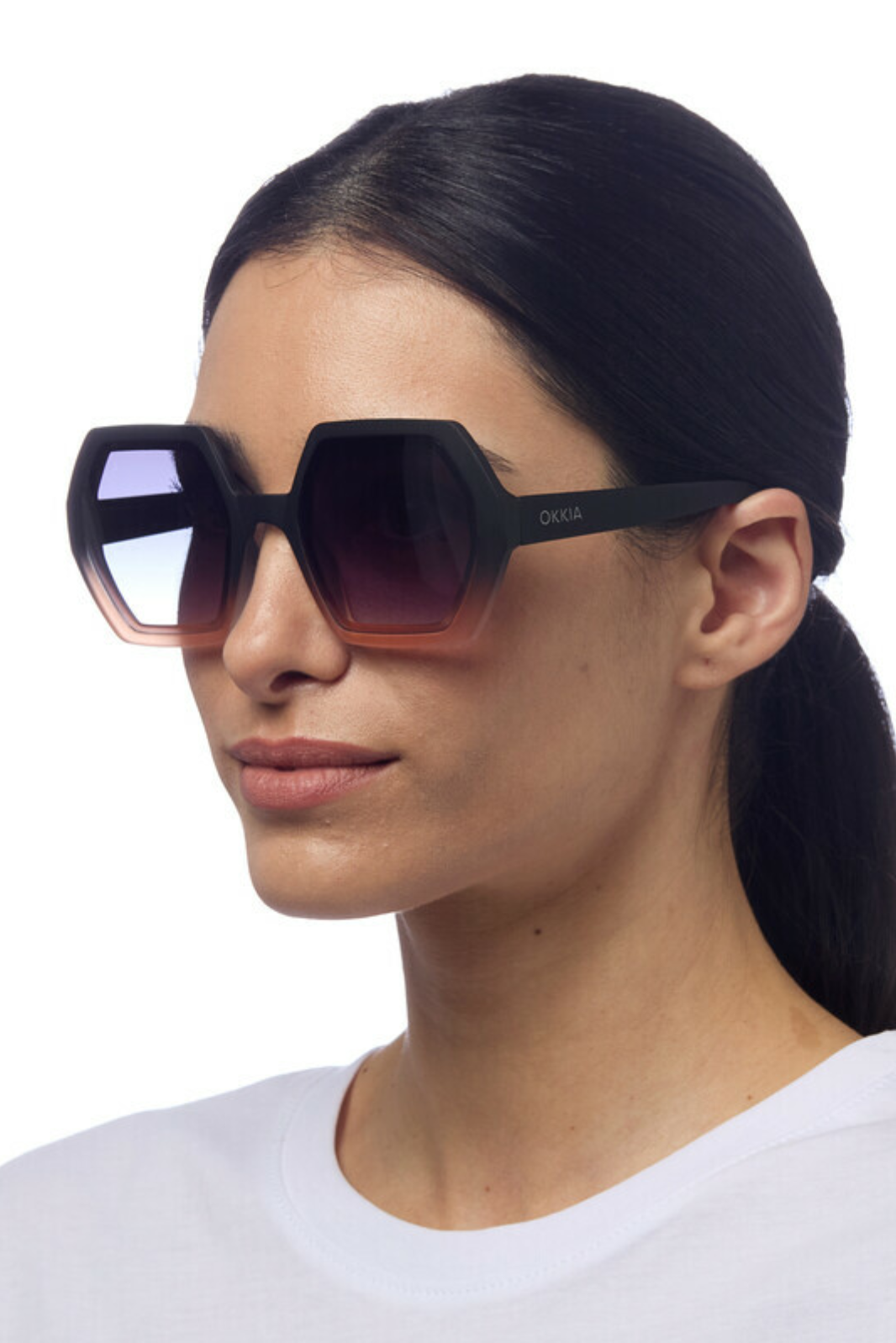 EMMA is a pre-assembled hexagonal sunglasses with soft touch frame and overlapping lenses.