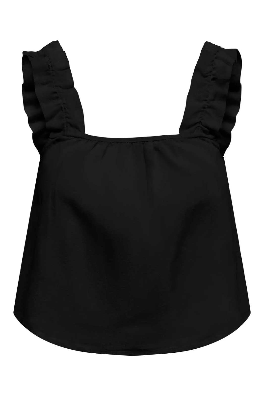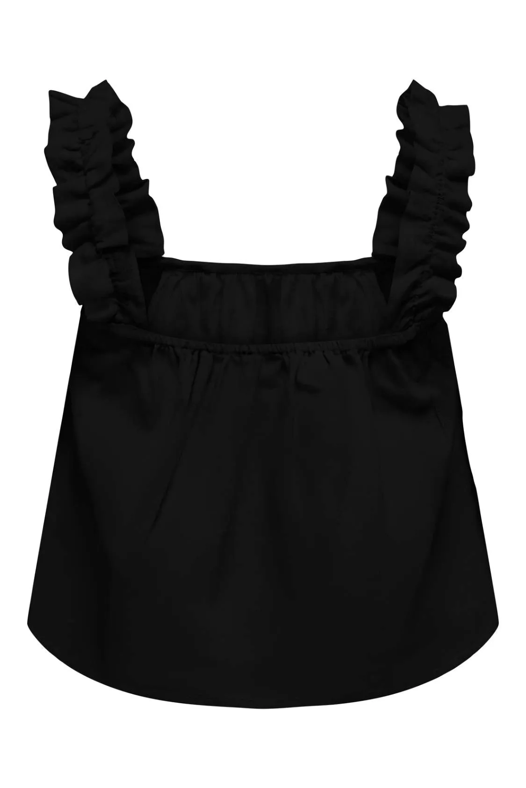Cropped length, aline shape with ruched elasticated shoulder straps