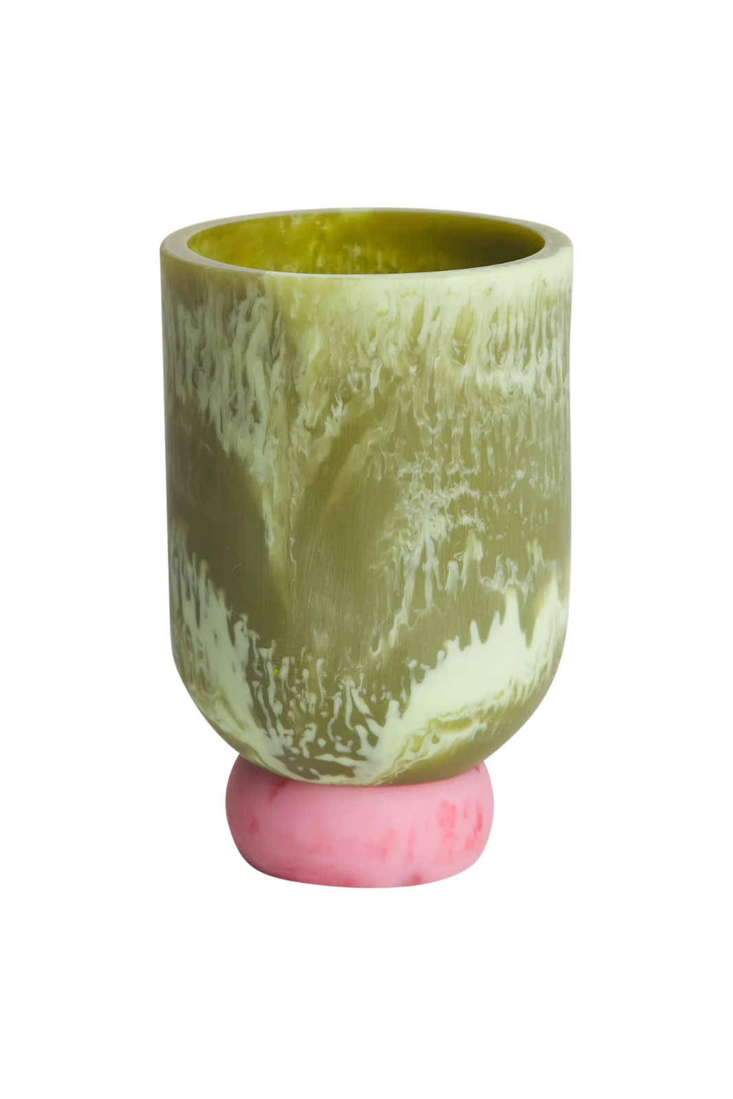 Bold in form and soft in curve, this statement resin vessel carries an unmistakable mod attitude. Crafted for versatility, it moves effortlessly from vanity to bar cart, perfect for everyday essentials or evening spritzers.