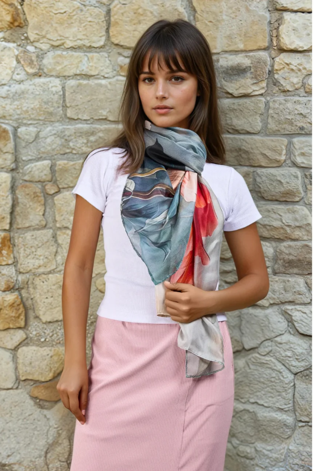 Pure silk elegant scarf combines natural beauty with breathable comfort. Crafted from premium silk, it’s lightweight, soft, and effortlessly stylish. Wear it as a chic day accessory, refined evening wrap, or versatile travel companion for a timeless touch of luxury.