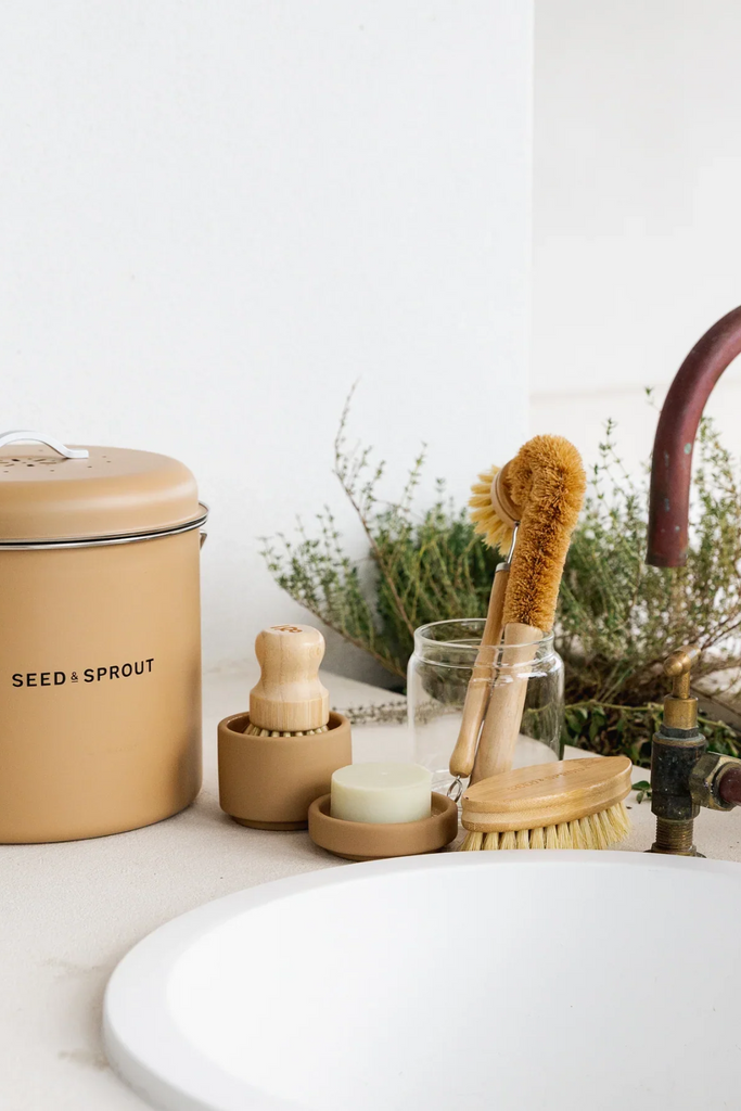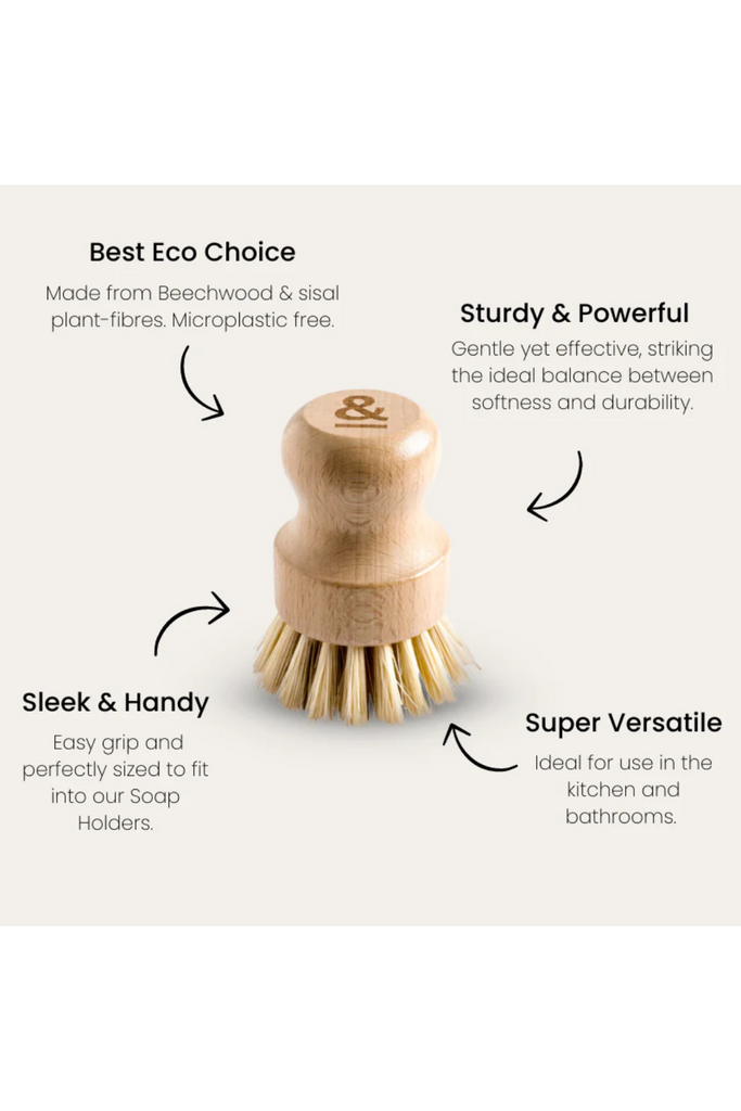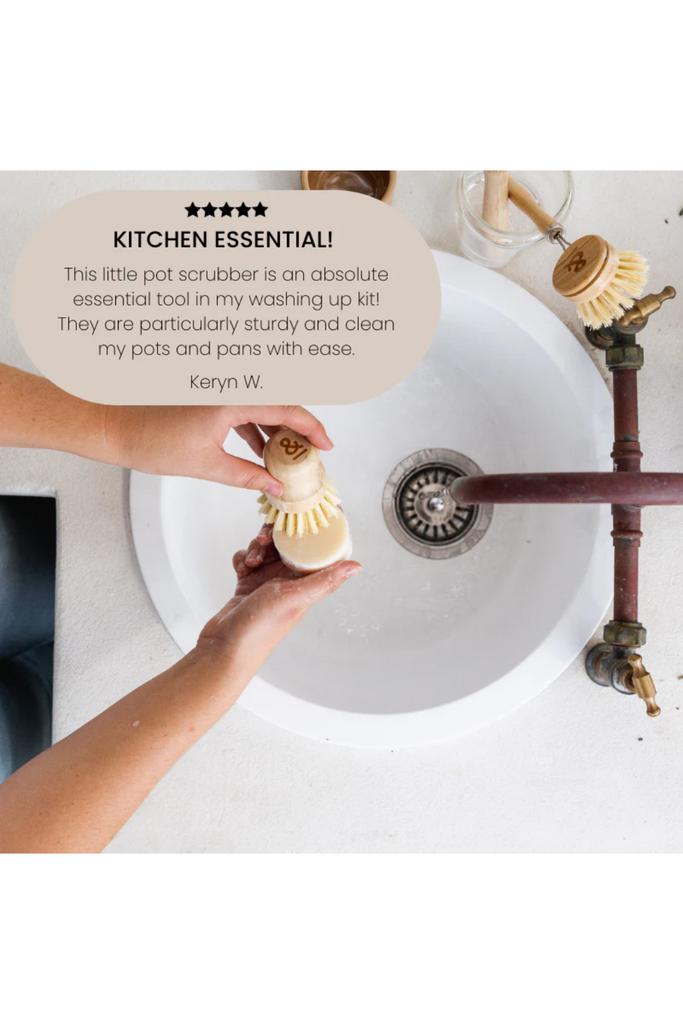 Made from Beech Wood and plant sisal fibres, this Pot Scrubber is perfect for scrubbing stubborn bits of food while keeping your sink clutter free, and beautiful while not in use.