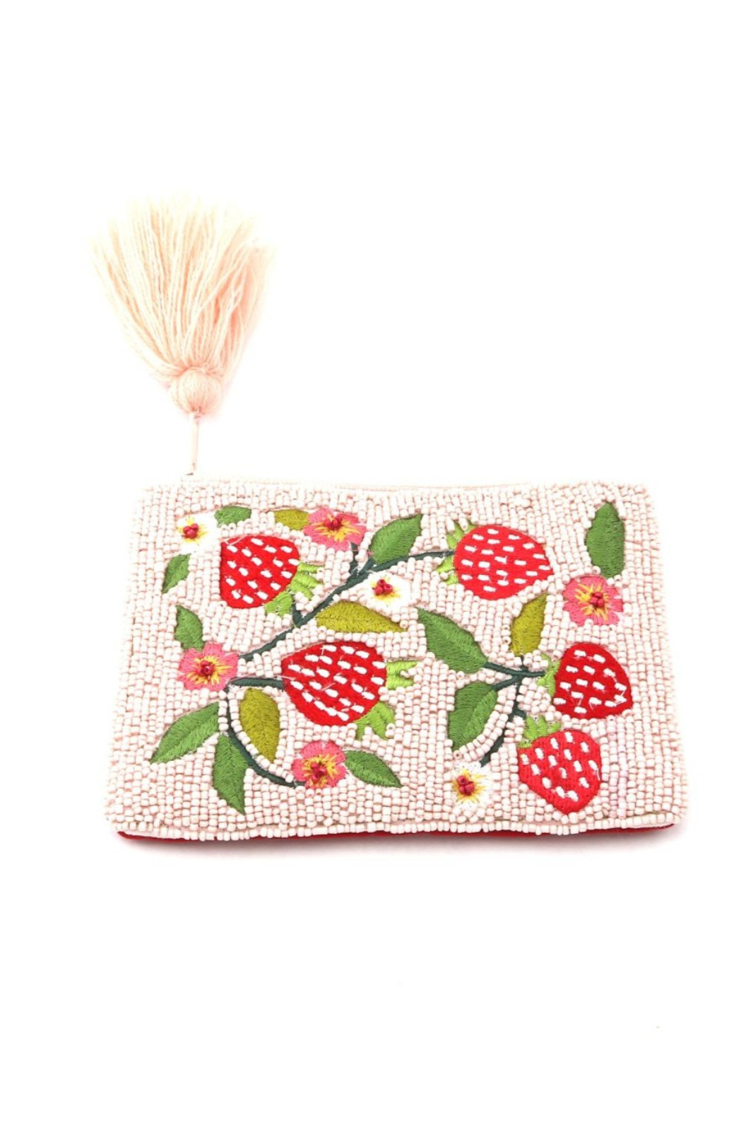 Beautifully beaded purse with pink tassel