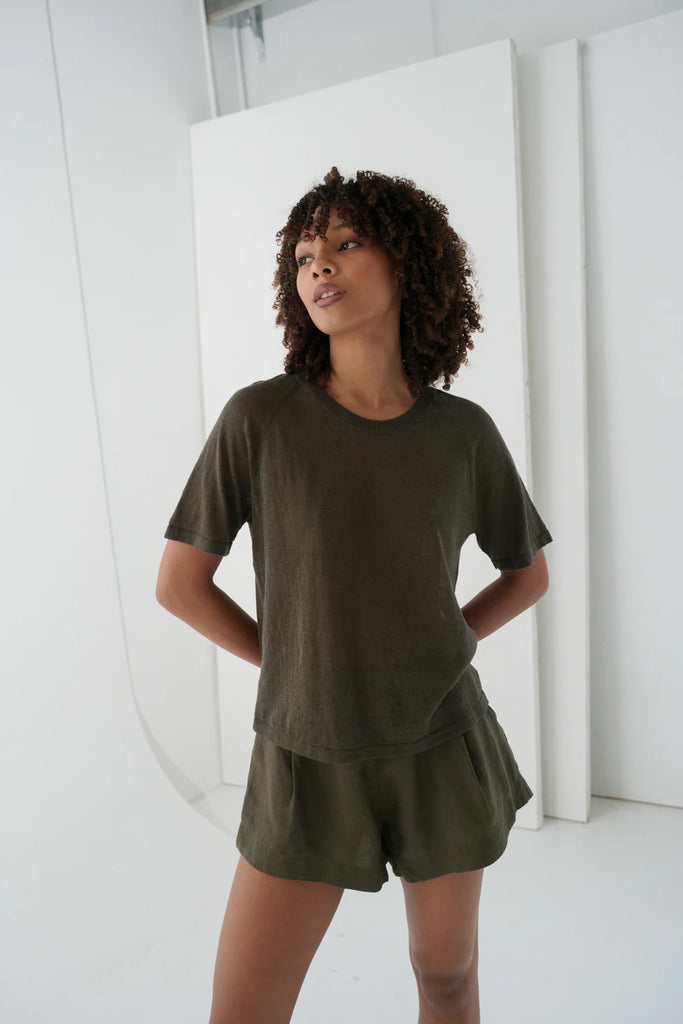 Lilly Pilly Grace Linen Knit Top - Khaki
