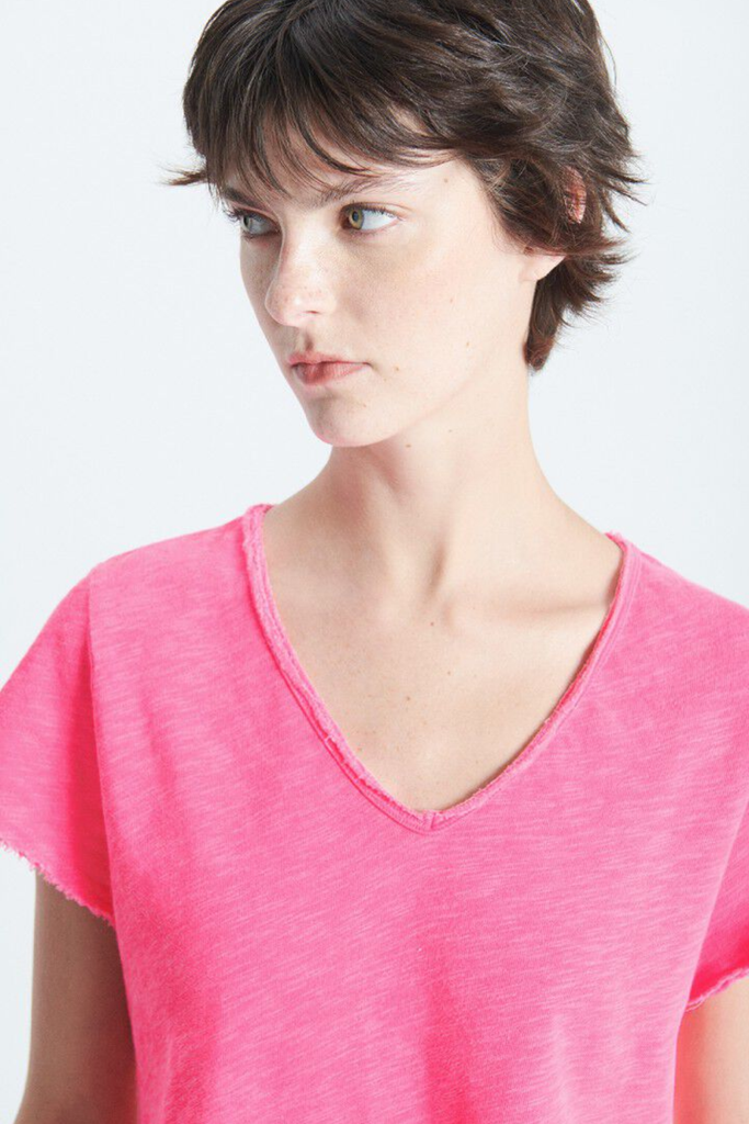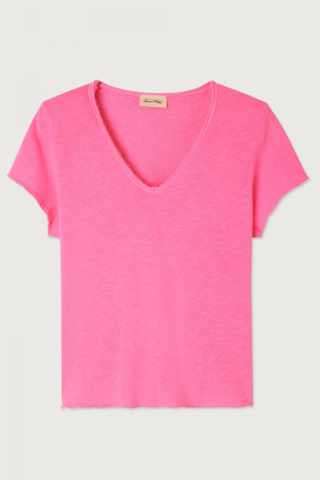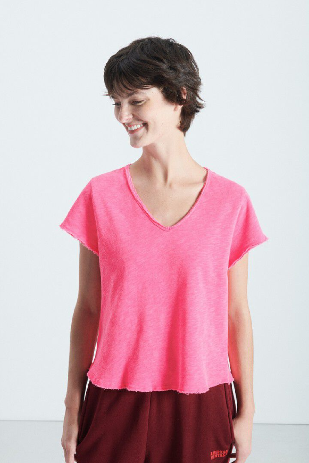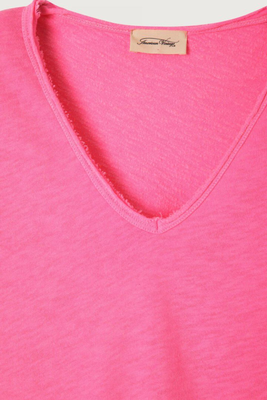 American Vintage Sonoma V Neck T-Shirt - Fluorescent Acid Pink