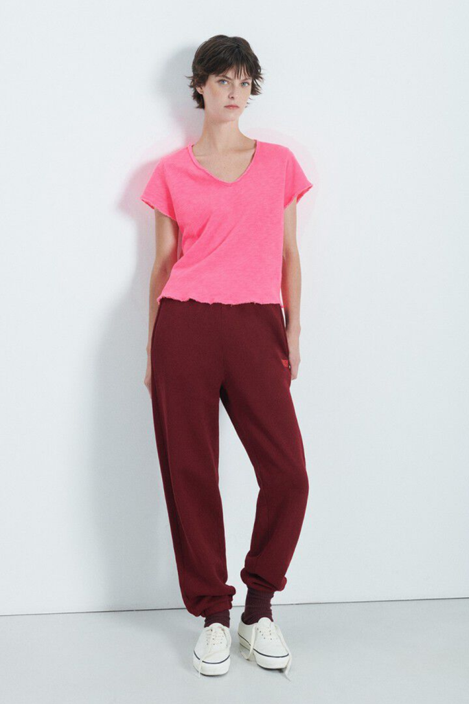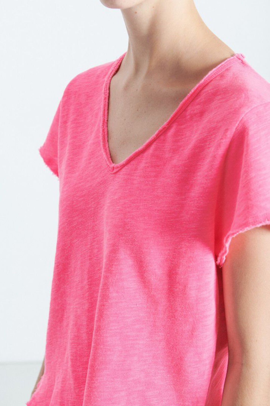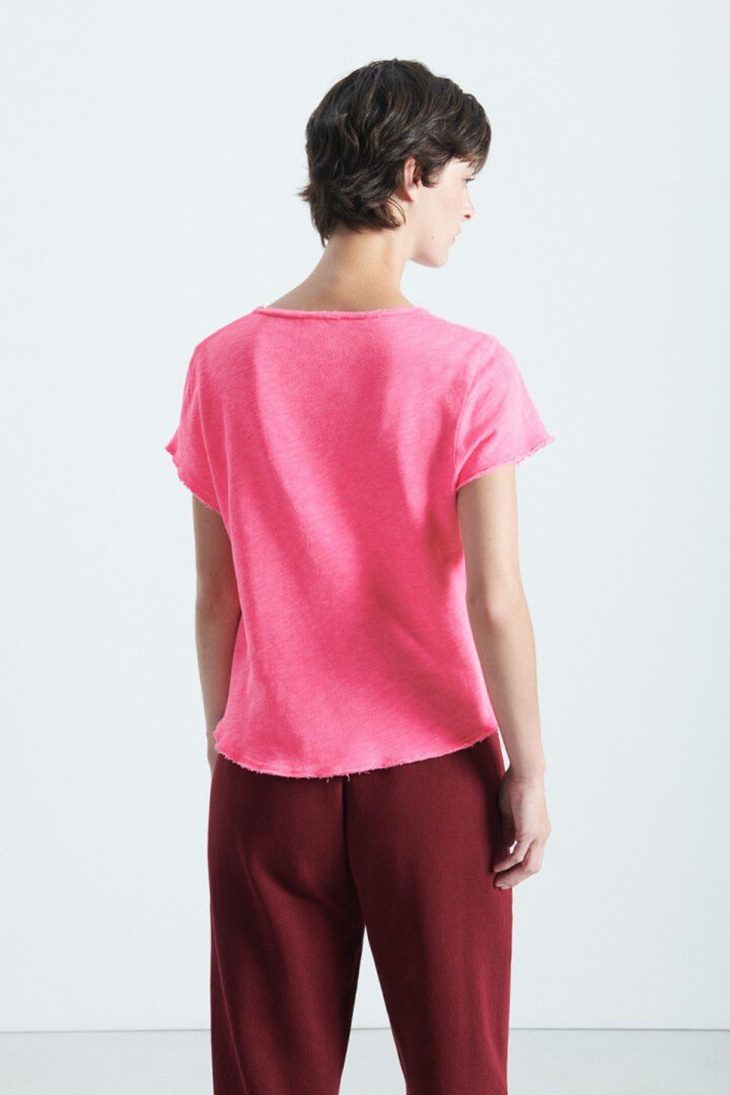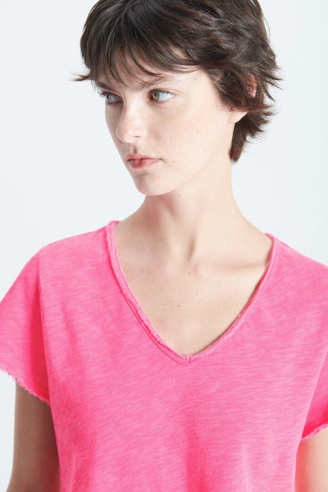 American Vintage Sonoma V Neck T-Shirt - Fluorescent Acid Pink