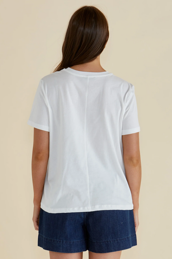 The Ellia Crew Tee offers an effortless, oversized fit crafted from soft cotton jersey. Featuring a crew neck and drop shoulder sleeves, it’s designed for easy layering or solo wear. With a slight high-low hem, this tee provides a comfortable, classic silhouette that works beautifully across transeasonal looks.