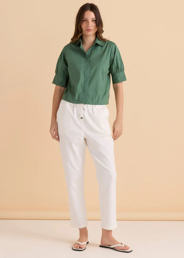 A crisp cotton-blend shirt designed for relaxed sophistication. Cuffed short sleeves and a hidden placket keep the look polished. Comfortable for all-day wear and effortless styling. A classic essential with refined detail.