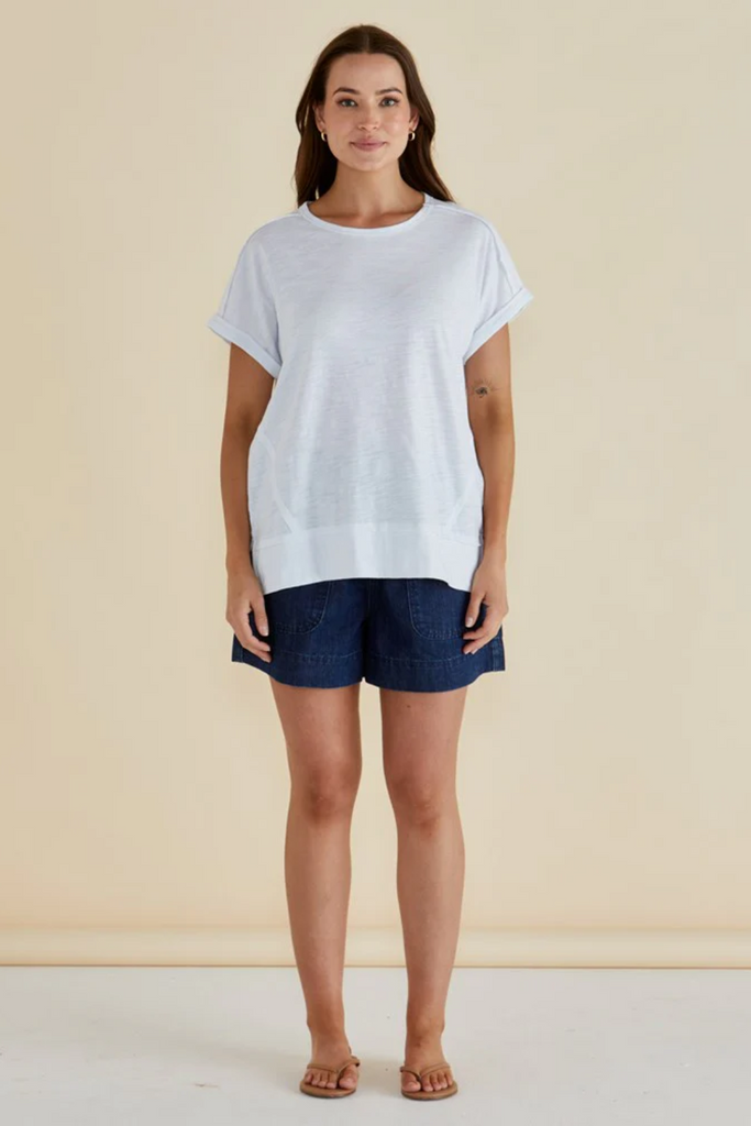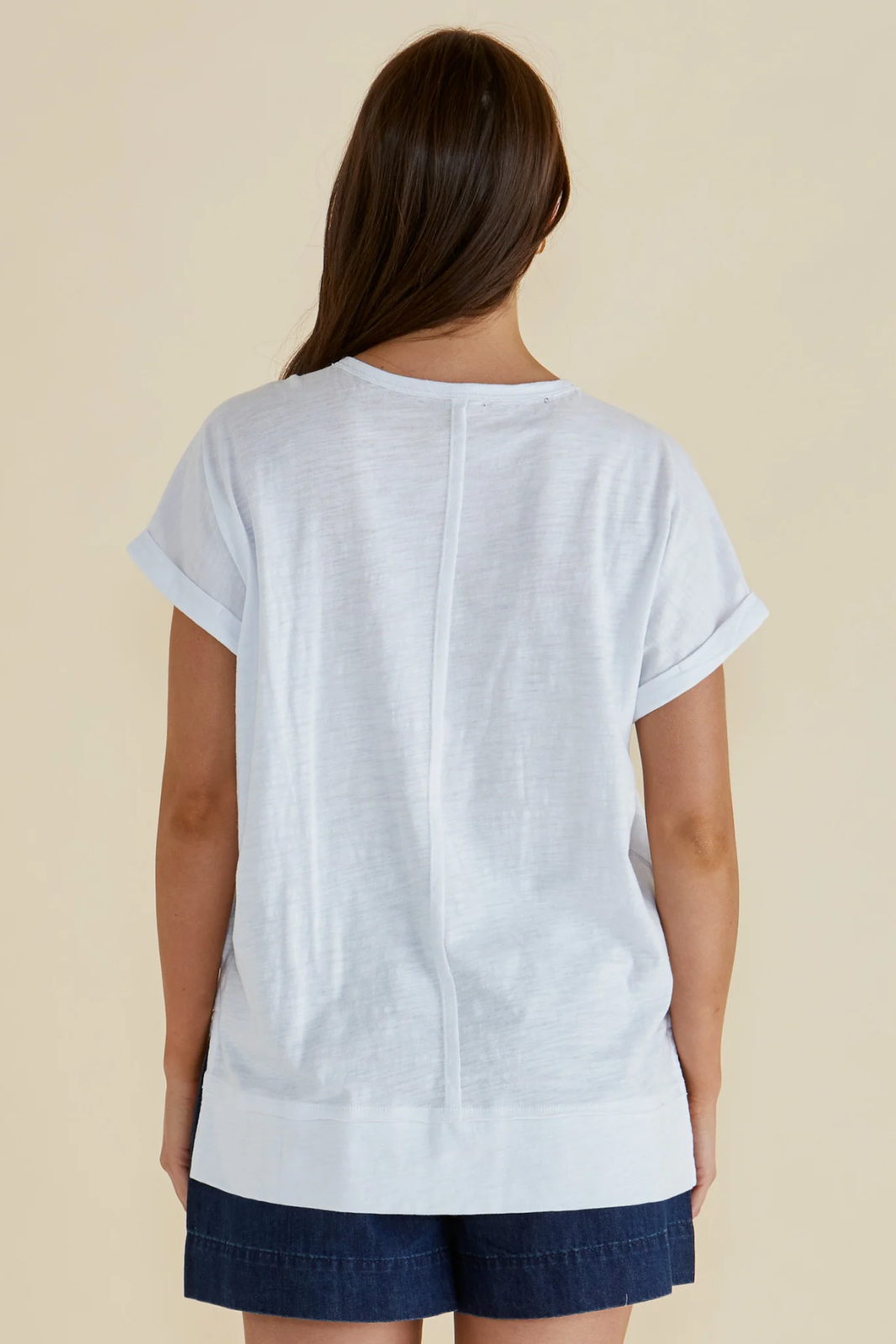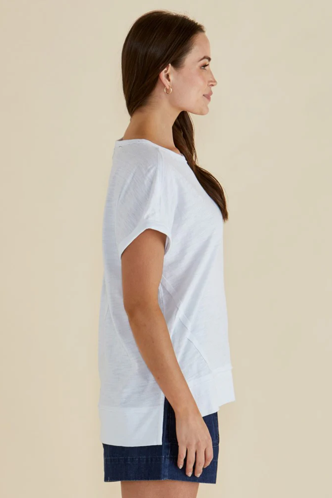 Crafted from cotton slub jersey, the Shirley Short Sleeve Tee features a high-low hem with side splits and raw edge detailing. Its relaxed fit and short sleeves create an easy, elevated look. A classic essential for comfortable transeasonal style.
