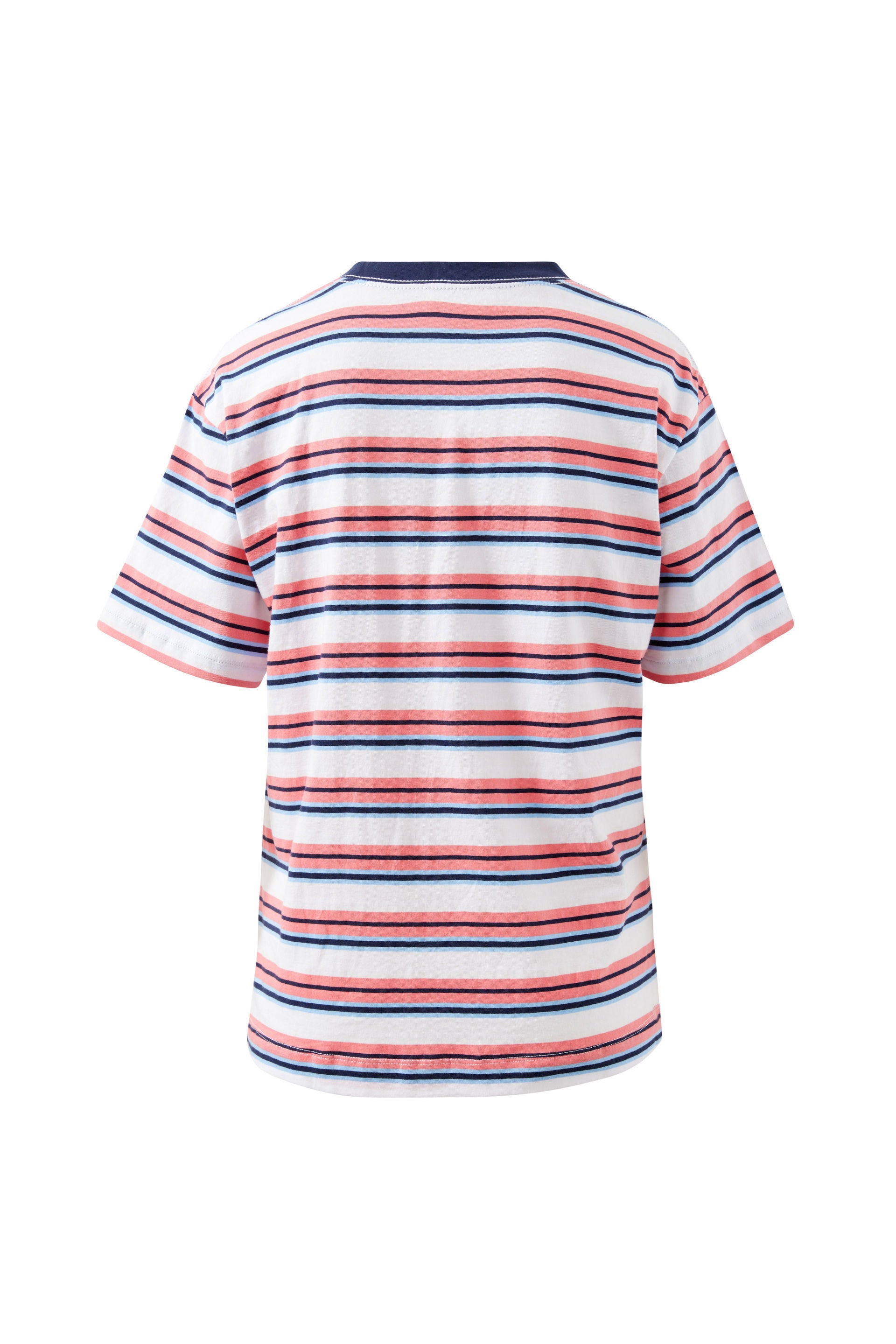 Ceres Life Stevie Slouchy Tee - Coral/New Navy Stripe