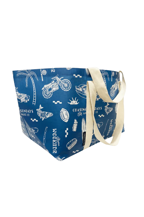 Made from recycled plastic bottles, this tote bag is not only eco-friendly but water resistant.